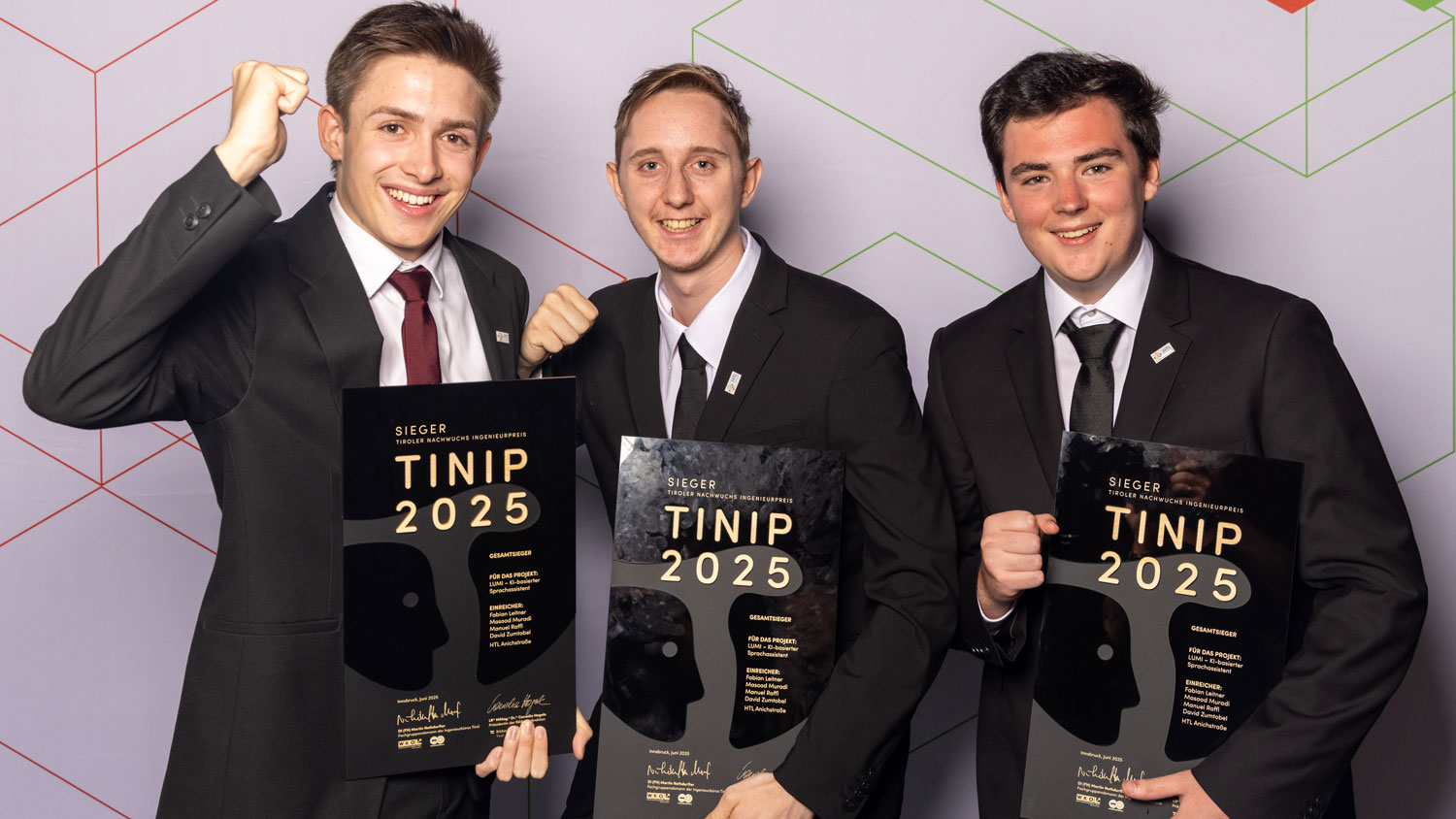 Sieger des TINIP 2025 sind Manuel Raffl, Fabian Leitner, Masood Muradi und David Zumtobel von der HTL Anichstraße in Innsbruck. Die vier Schüler haben in der Kategorie Maschinenbau und IT einen nachhaltigen Sprachassistenten umgesetzt. Mit „LUMI“ entwickelten sie einen innovativen Sprachassistenten, der moderne Künstliche Intelligenz, semantische Suche und lokale Datenverarbeitung in einem nachhaltigen Gesamtkonzept vereint. Die modulare Architektur ermöglicht eine flexible Erweiterung – etwa für Verkehrsinfos, barrierefreie Anwendungen oder Bildung. Besonders hervorzuheben ist die lokale Verarbeitung sensibler Daten ohne Cloud-Anbindung sowie der Einsatz modernster Verschlüsselung – ganz im Sinne von Datenschutz und Datensicherheit.