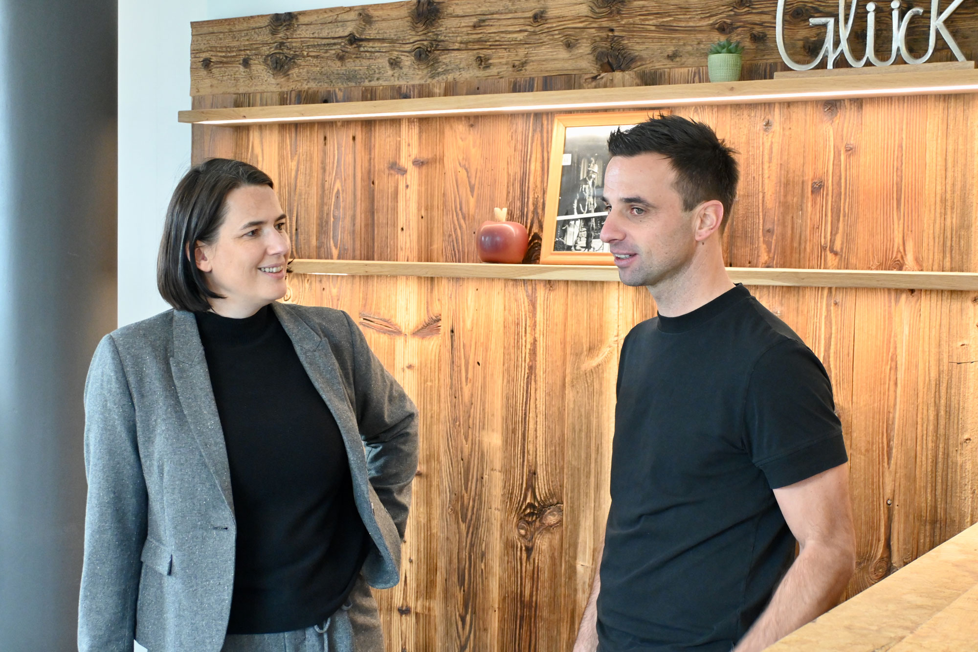 Im Hotel angekommen, begrüßt uns Hausherr Gerhard Scherer, der mit seinem dichten schwarzen Haar, schlicht gekleidet mit grauer Jeans und schwarzem Shirt, einen südländischen Eindruck vermittelt. Obwohl die italienische Grenze nah ist und Obertilliachs Berge im Ersten Weltkrieg Frontgebiet waren, ist der sympathische Vollblutgastronom durch und durch Tiroler und Tilliacher. Sein Hotel ist sein Jugendtraum und Lebenswerk zugleich. Seine Frau Sabine hat ihn von den ersten Ideen an tatkräftig bei der Umsetzung unterstützt. Sie hat deshalb schon in der Planungsphase eine touristische Ausbildung am Tourismuskolleg in Innsbruck absolviert und danach in mehreren Hotels Berufserfahrung gesammelt.