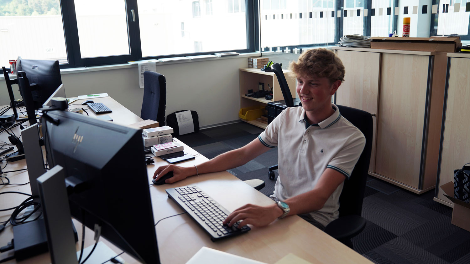 Felix Griesser kommt aus Mieming und ist 21 Jahre jung. Für ihn war klar: „Ich möchte mein eigenes Geld verdienen.“ Nach seinem Zivildienst folgte die Erkenntnis: IT ist seine Leidenschaft. Während eines Schnuppertags im Helpdesk von Liebherr merkte er: „Das ist es.“ Und so startete er bereits am 2. September 2024 als Informationstechnologe in der Betriebstechnik – mit verkürzter Lehrzeit.