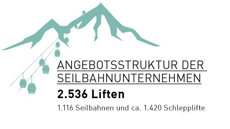 Heute stehen den Gästen in Österreich 2.536 Seilbahnanlagen – 1.116 öffentliche Seilbahnen und 1.420 Schlepplifte zur Verfügung. Diese befördern jährlich rund 600 Millionen Fahrgäste. Den alpinen Wintersportlern stehen heute in Österreich 23.700 ha an Pistenfläche zur Verfügung. Durch moderne Beschneiungsanlagen ist auf über 75 % der gesamten österreichischen Pistenfläche ein gefahrloser Skibetrieb bis Saisonende garantiert. Für die Sicherheit und den Komfort der Pisten sind spätnachts und frühmorgens über 1.000 Pistengeräte im vollen Einsatz.