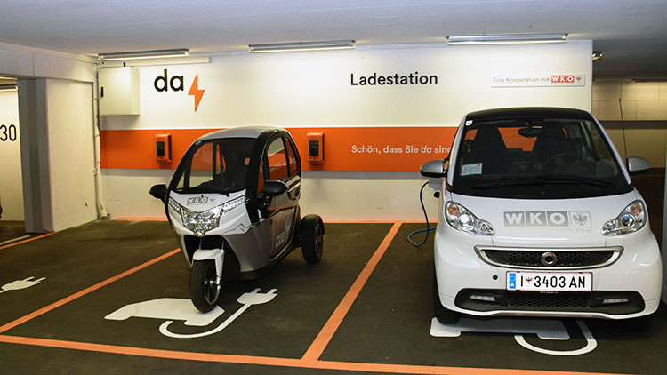 Für alle E-Autos befindet sich eine E-Tankstelle in der Parkgarage.