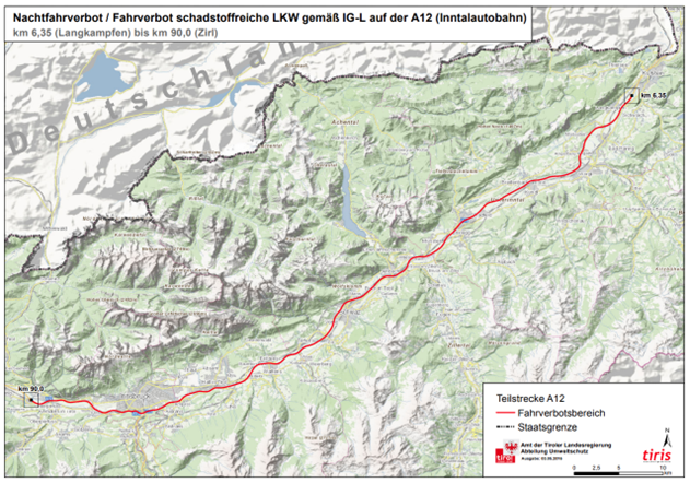 - gültig auf der A 12 Inntal Autobahn zwischen Straßenkilometer 6,35 (bei Langkampfen) und 90,00 (bei Zirl) in beide Fahrtrichtungen
