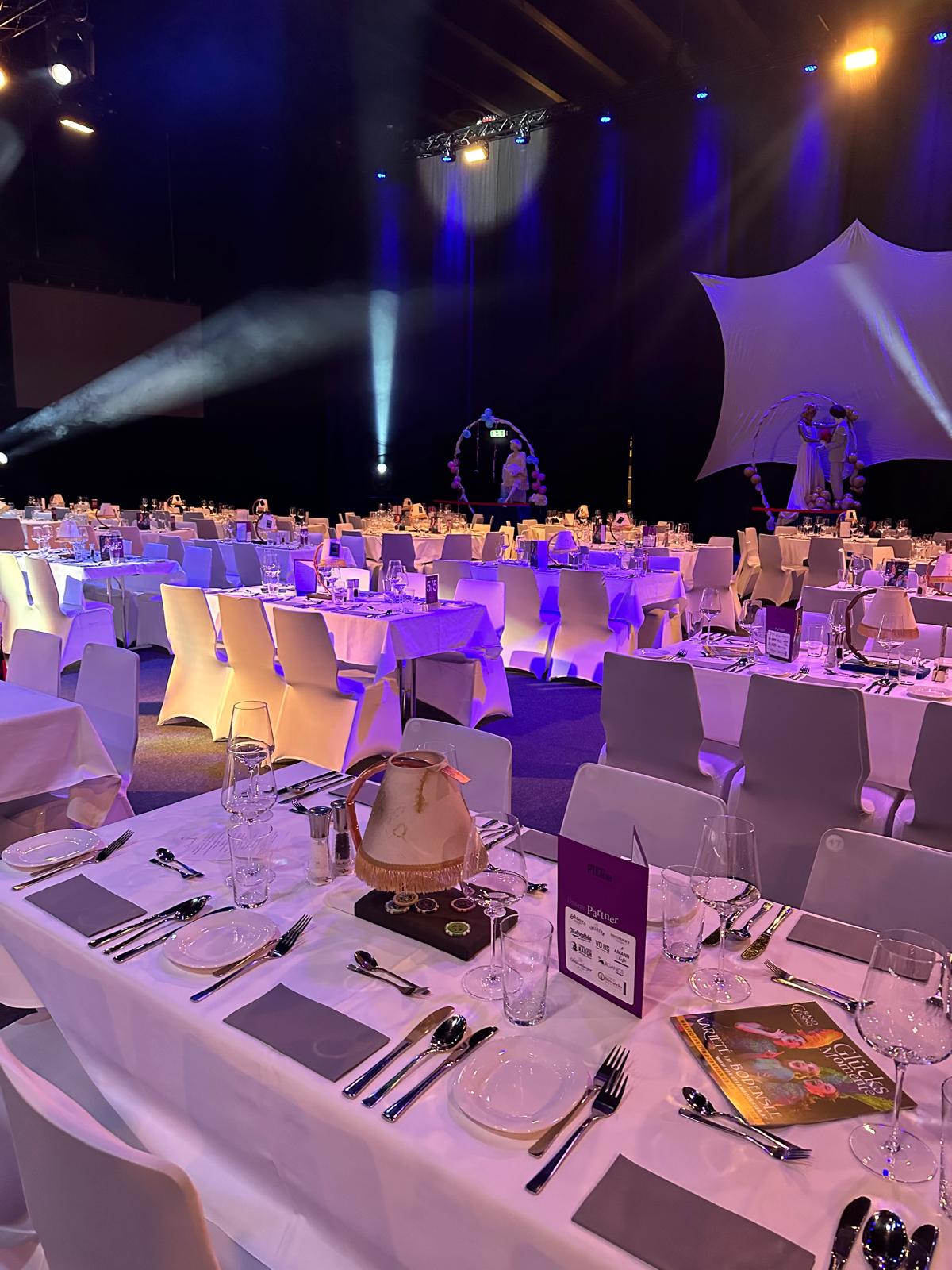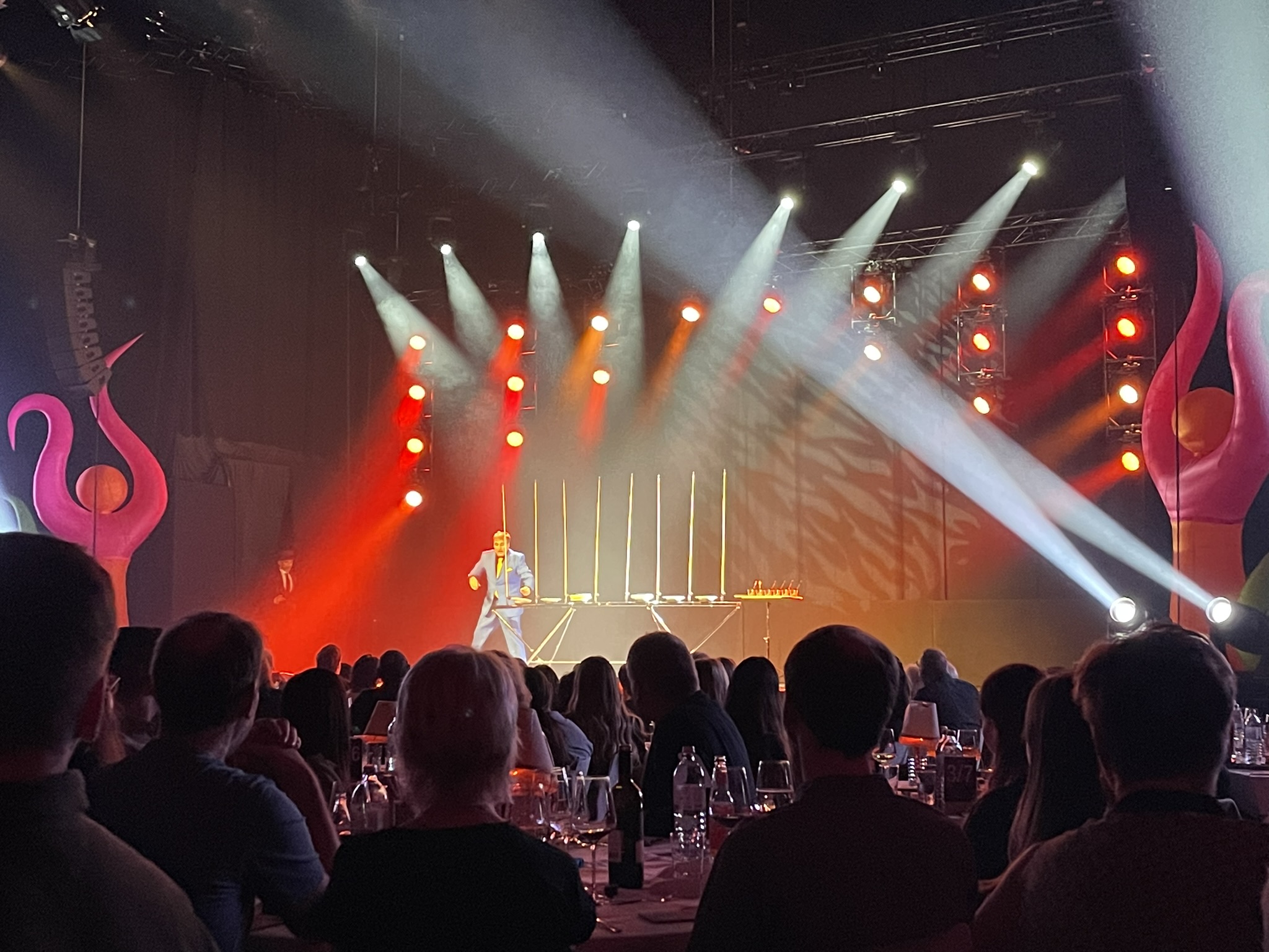 Zur Begrüßung wurde ein feiner Aperitif an der Bar serviert. Danach sind wir durch den Saal geschlendert und durften bei den letzten Vorbereitungen der Künstler schnuppern.