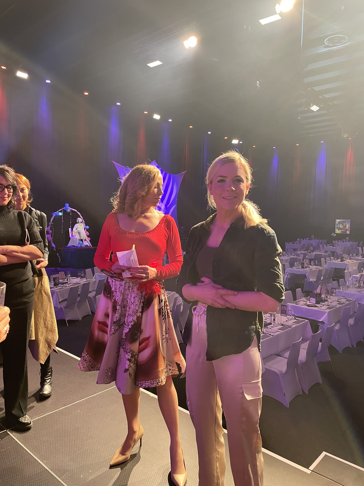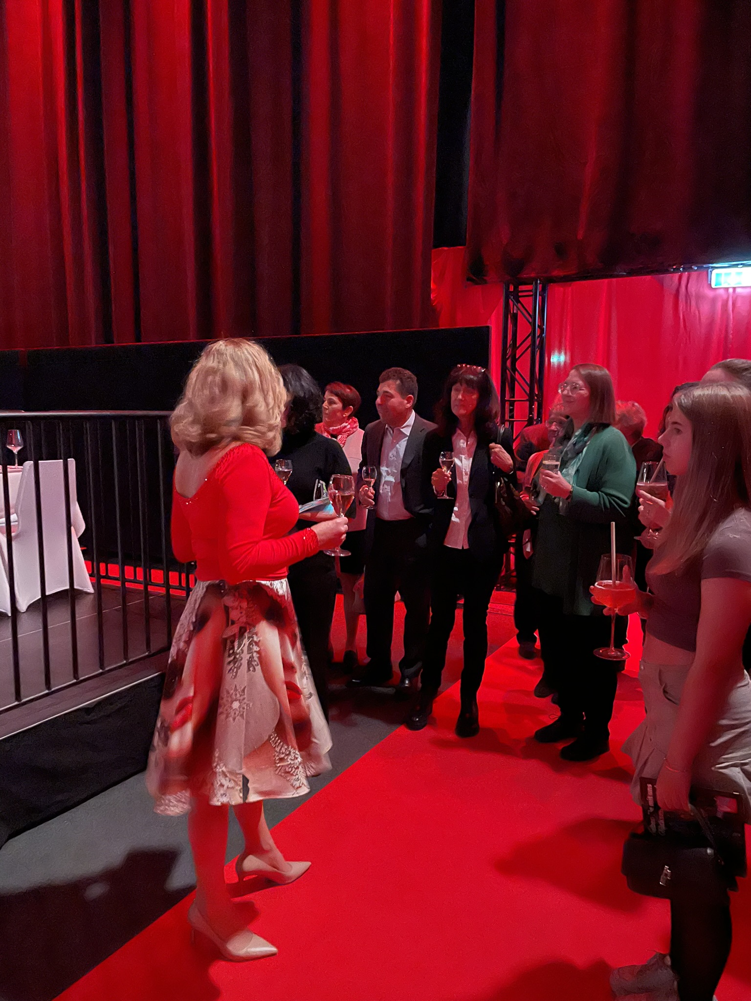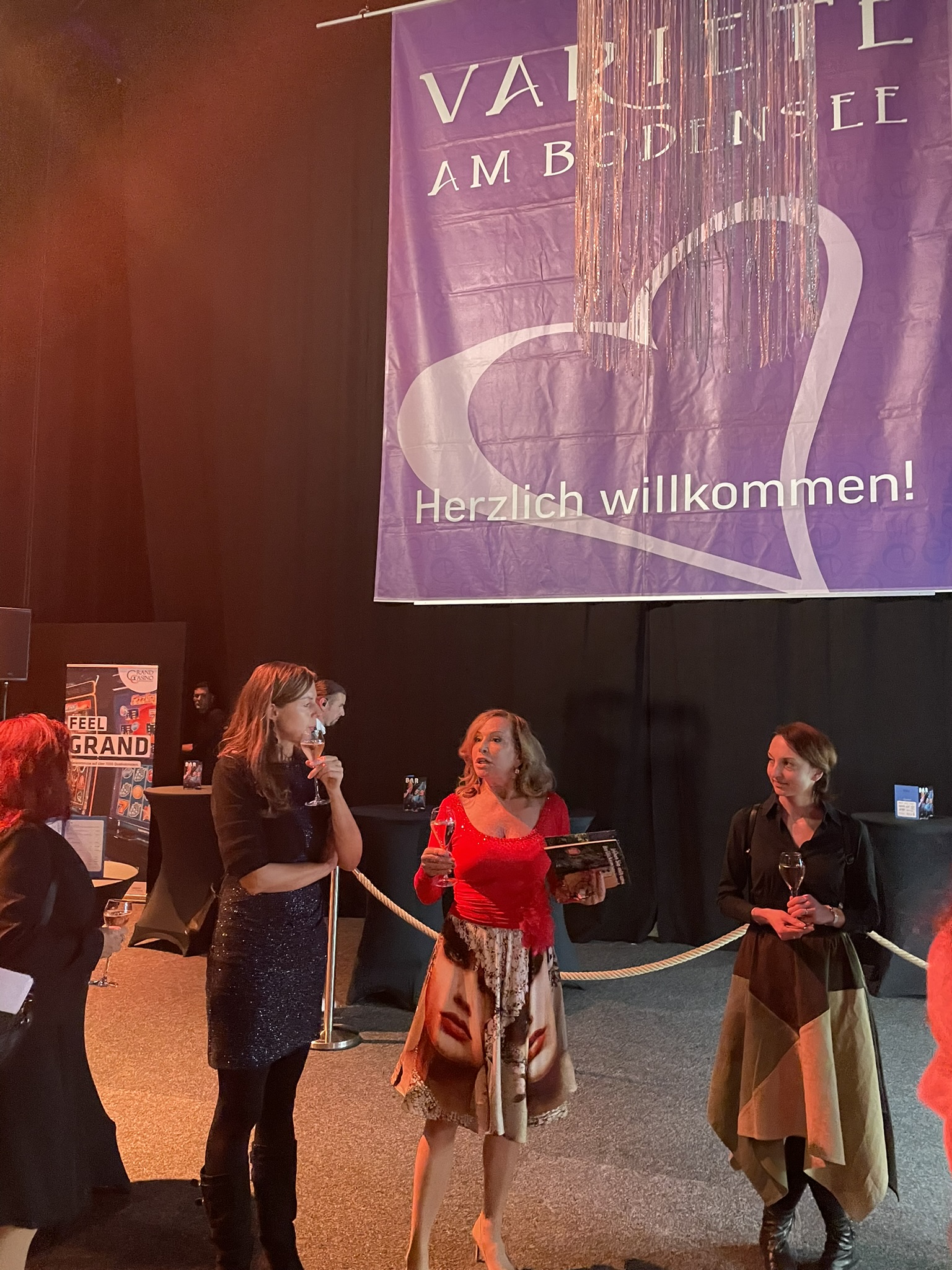 Während der Backstage-Tour hat uns Catrin Wendel mit Zahlen und Fakten sowie spannende Geschichten aus 19 Jahren Varieté versorgt. Die österreichische Sängerin, Tänzerin und Schauspielerin Gloria Veit plauderte aus ihrer Bühnenerfahrung und wurde von Catrin und Heinz Wendel unter anderem auch als Choreographin für die gesamte Programm engagiert. Catering-Chef Lukas Buttazoni bot einen exklusiven Blick in die Küche und Arbeitsräume des Cateringteams.