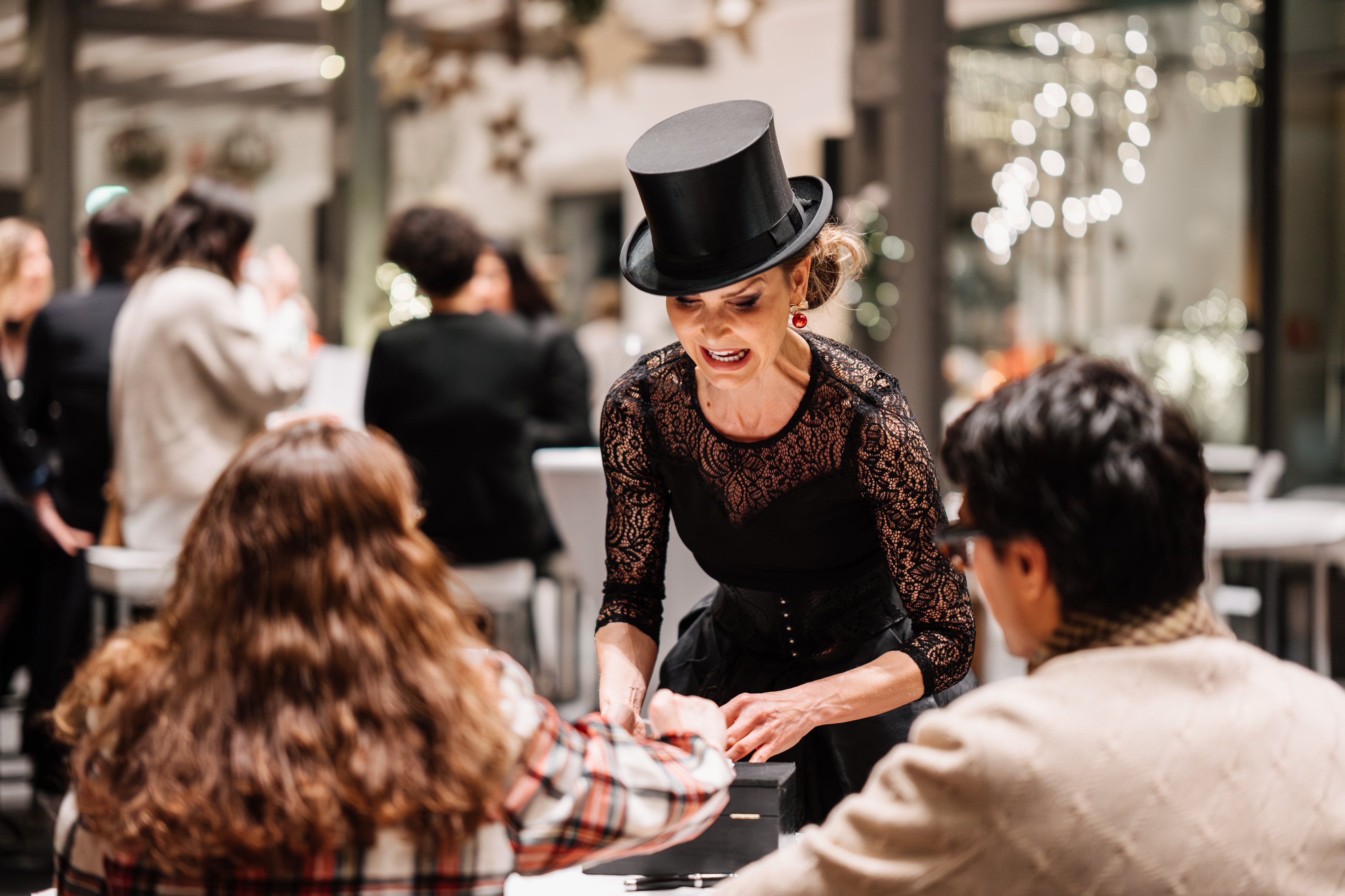 Nach dem köstlichen Menü der Inatura gab es „Zauberkunst vom Feinsten“ mit der Magierin Kerstin Andreatta. Sie gilt als Perle in der Welt der Magie. Als eine der wenigen Frauen in der Szene eroberte sie mit frechem Charme, sympathischer Natürlichkeit und besonderen Kunststücken die Herzen der Gäste.
