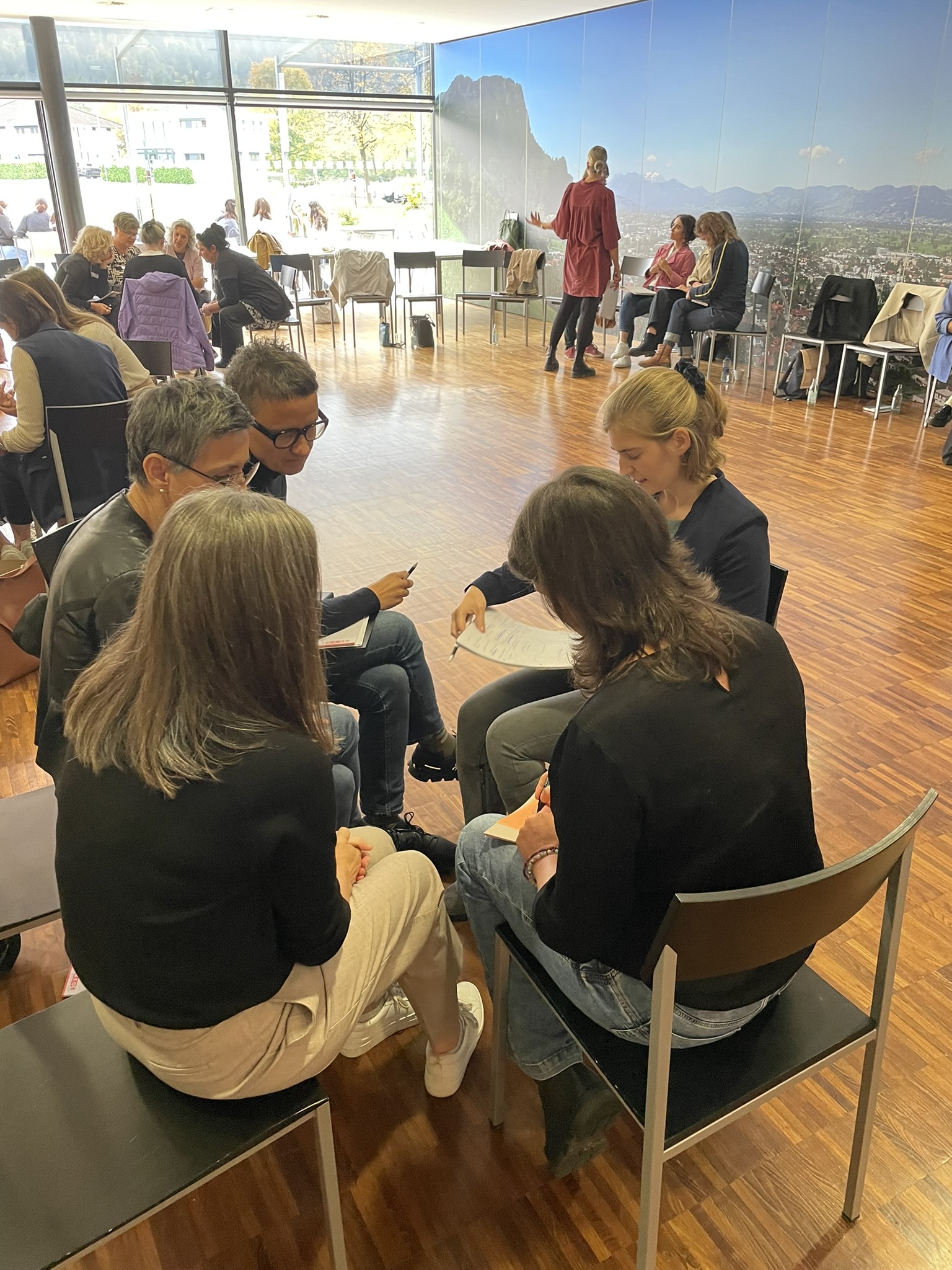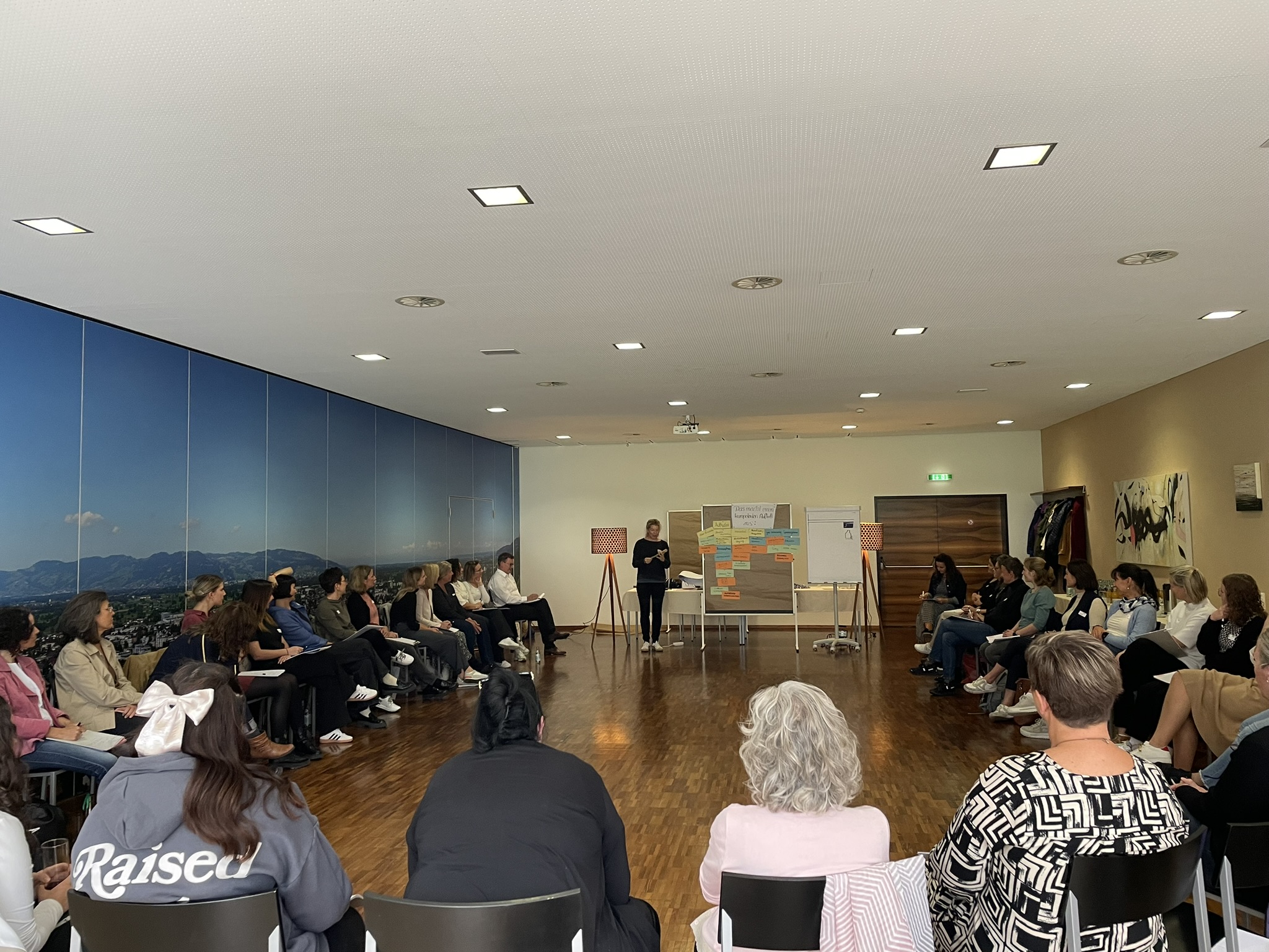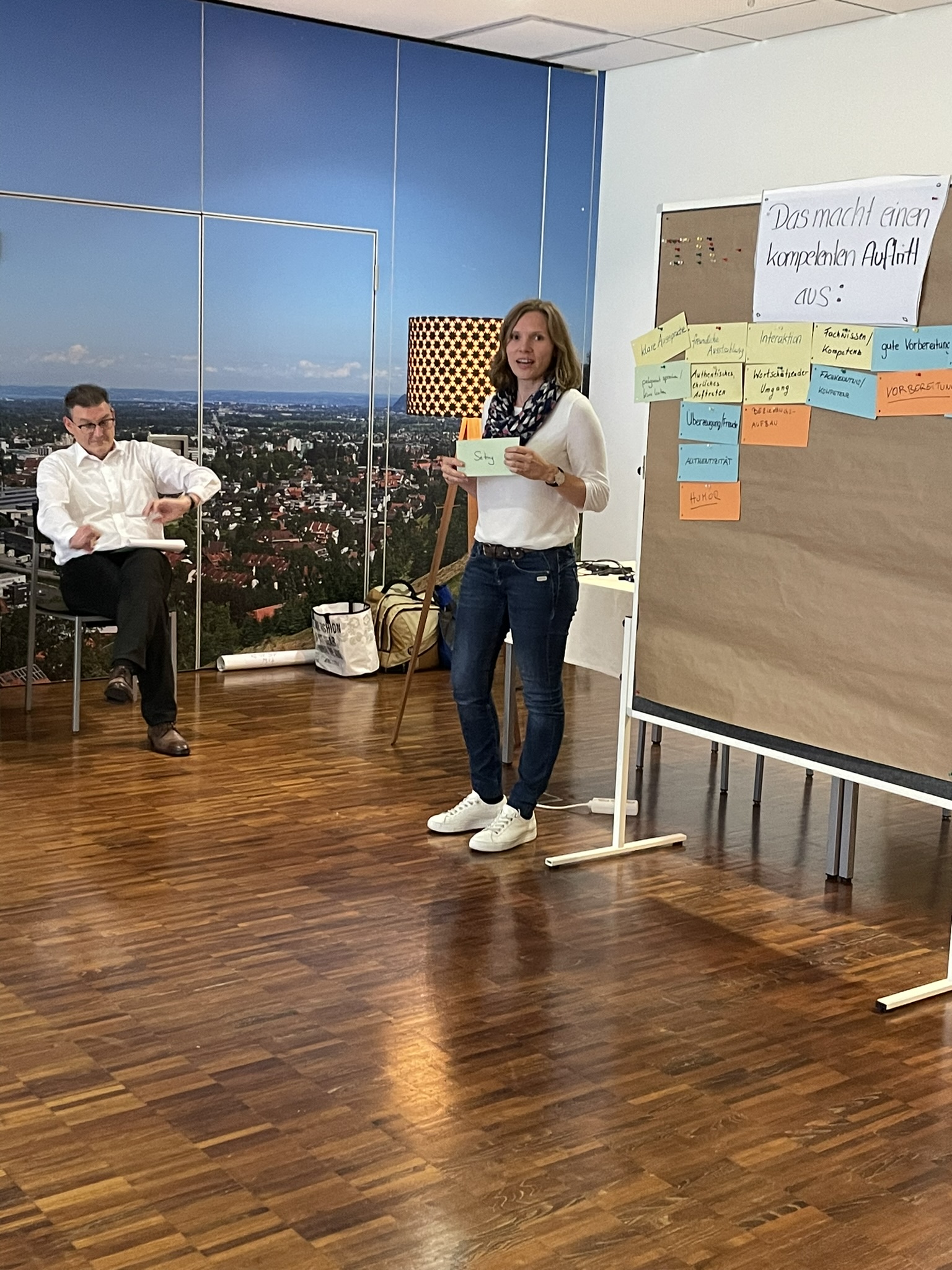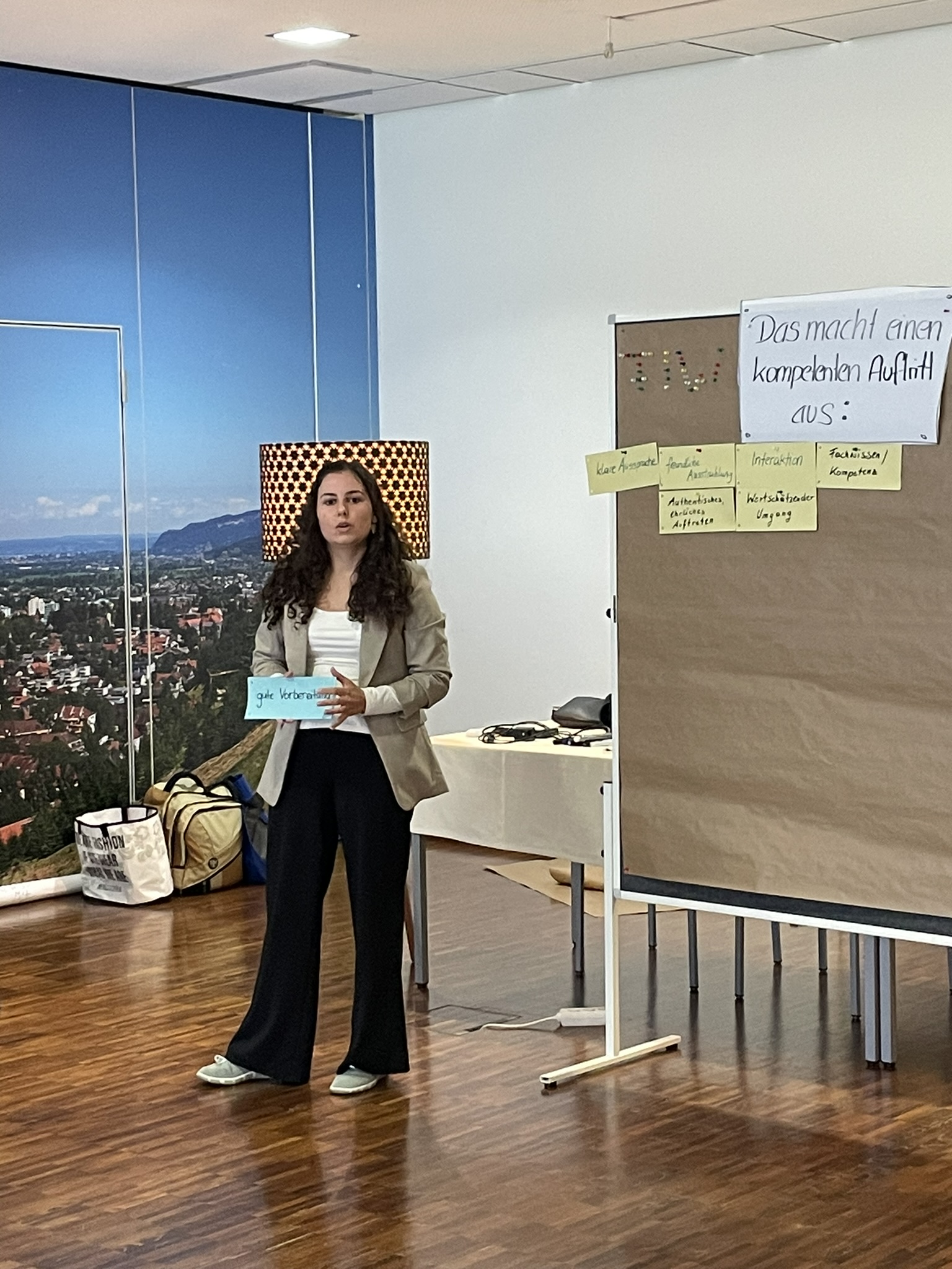 Das anspruchsvolle Tagesseminar ging bewusst über die Komfortzone hinaus und ermutigte die Teilnehmerinnen, ihre rhetorischen Fähigkeiten zu stärken und selbstbewusst aufzutreten. In Gruppenarbeit wurden Fragen diskutiert und beleuchtet: Was macht einen professionellen Auftritt aus, welche Füllwörter können wir vermeiden und welche Haltung und Sprache machen den Unterschied.