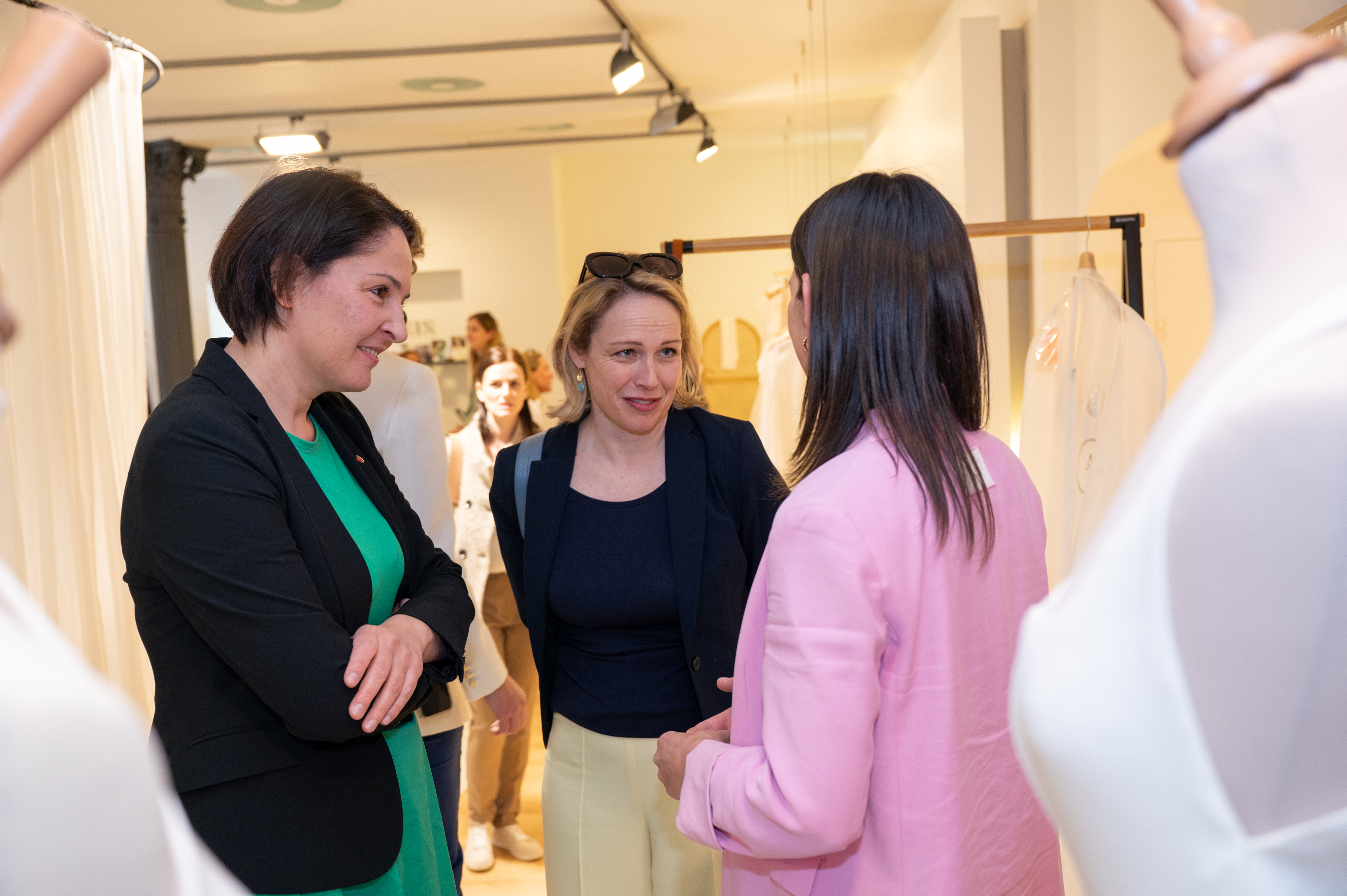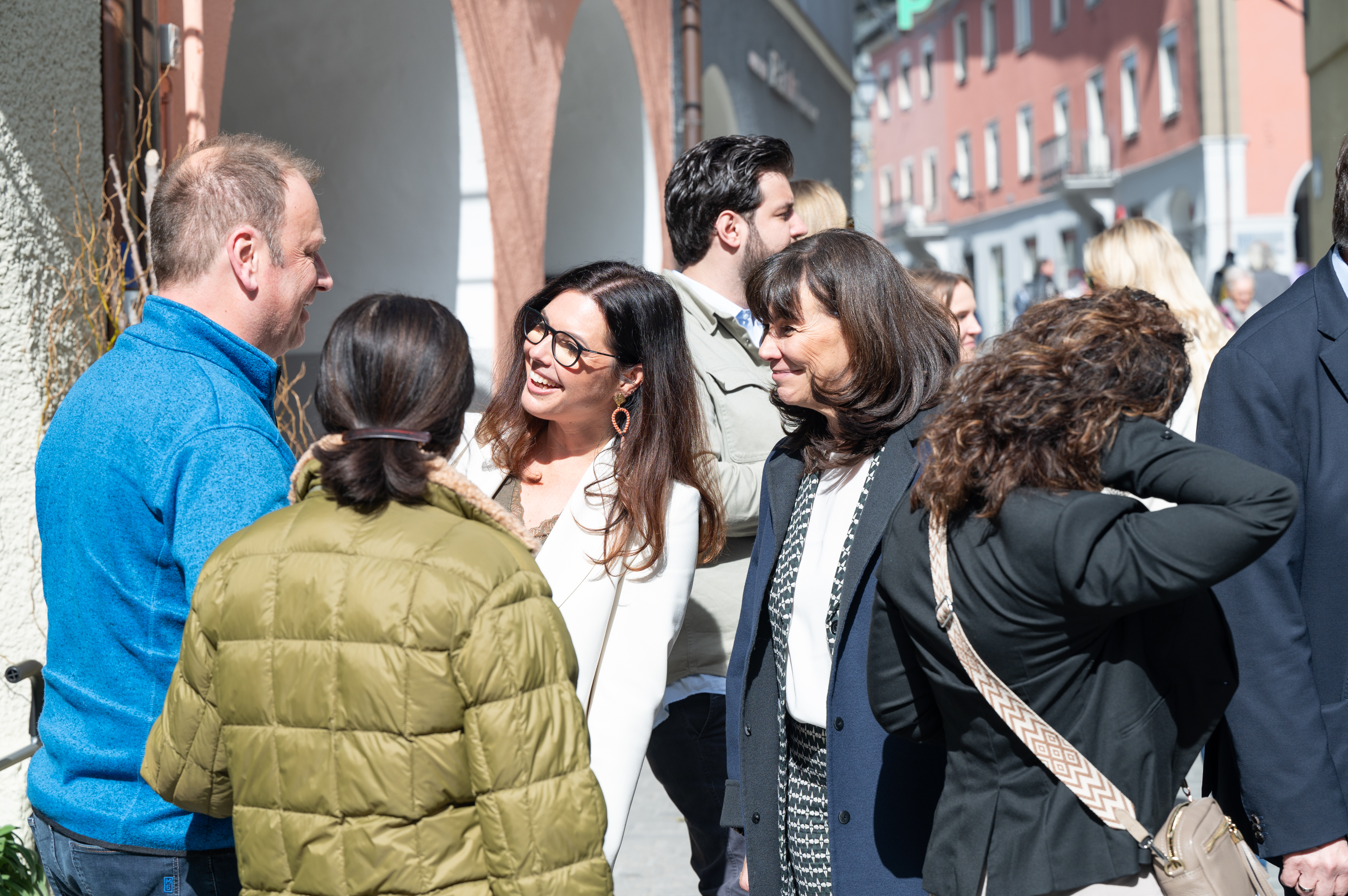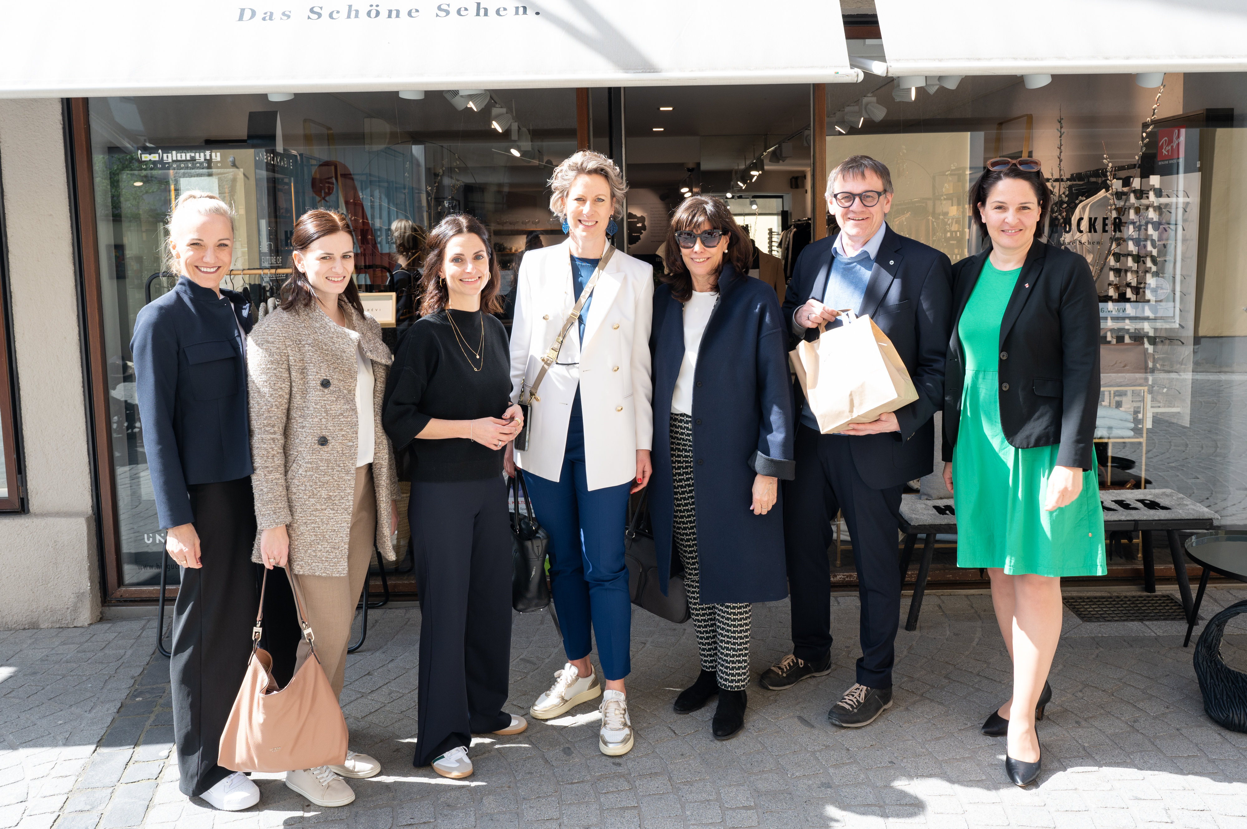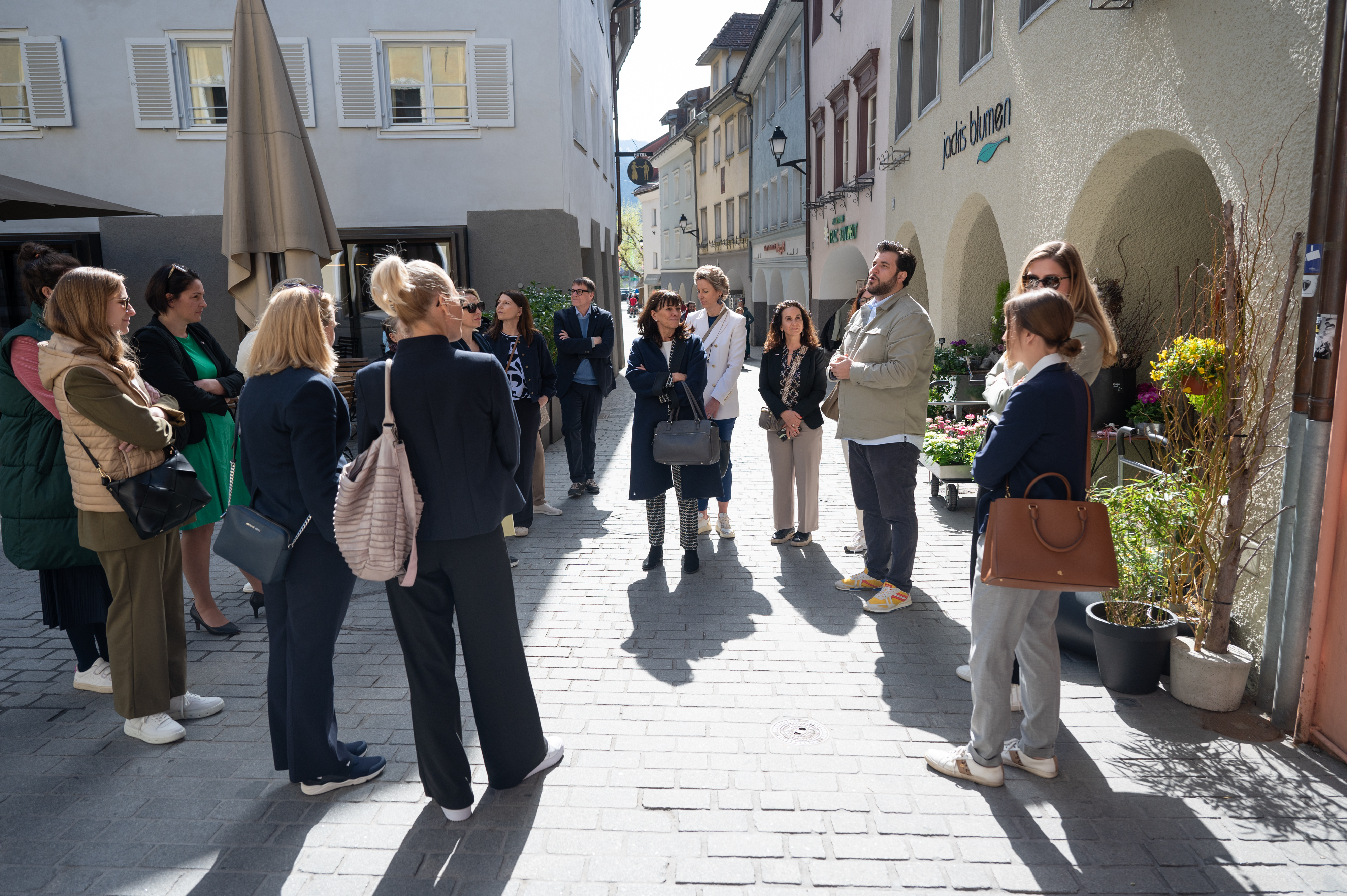 Vizebürgermeisterin Andrea Mallitsch und Stadtrat Cenk Dogan führten durch die Bludenzer Innenstadt. Im Brautmodengeschäft "feinsein" von Carmen Müller gab es Einblicke, im Conceptstore "Hingucker" von Jennifer Bitsche Durchblicke und bei Jacki's Blumen eine bunte Auswahl an Blumen und Dekorationen.