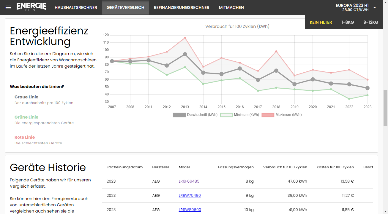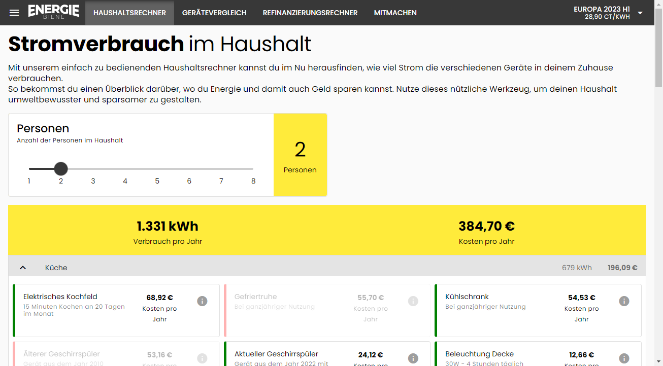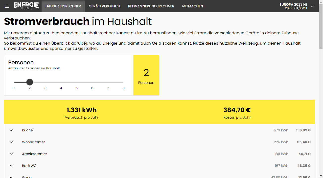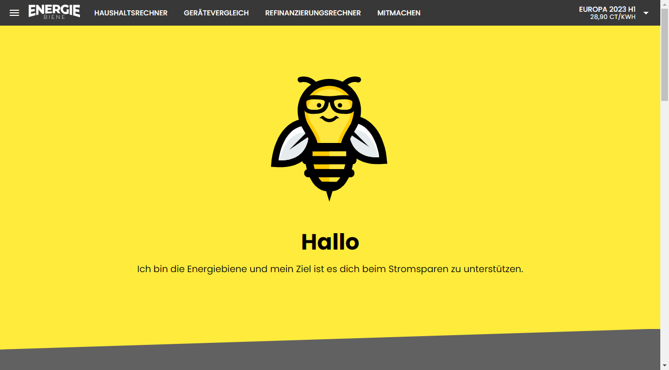 Die Energie Biene hilft beim Strom sparen. Sie errechnet schnell und einfach den Stromverbrauch von Haushaltsgeräten. Übersichtlich und auf einen Blick ist damit sofort klar, wo die Energie hinfließt. Und mit diesem Wissen gefüttert, prüft die Energie Biene, ob eine Neuanschaffung sinnvoll ist. Außerdem simuliert sie, was passiert, wenn Endverbraucher ihre Gewohnheiten ändern. Neugierig? Dann teste die Energie Biene. Sie ist kostenlos und online. Lass uns gemeinsam Strom sparen.