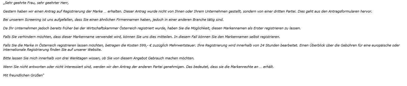 Nicht beantworten: Irreführende E-Mails zur Markenregistrierung im Umlauf
