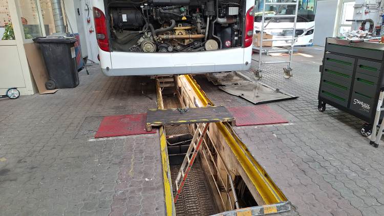 Anschließend gab es eine informative und anekdotenreiche Tour durch die Werkshallen des Unternehmens, die nicht nur technikaffine Motorenliebhaber:innen begeisterte. Wer Lust hatte, konnte sogar eine kurze Runde im offenen Oldtimer-Bus über das Betriebsgelände genießen.