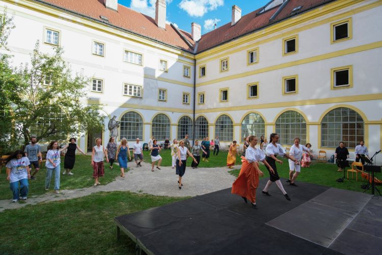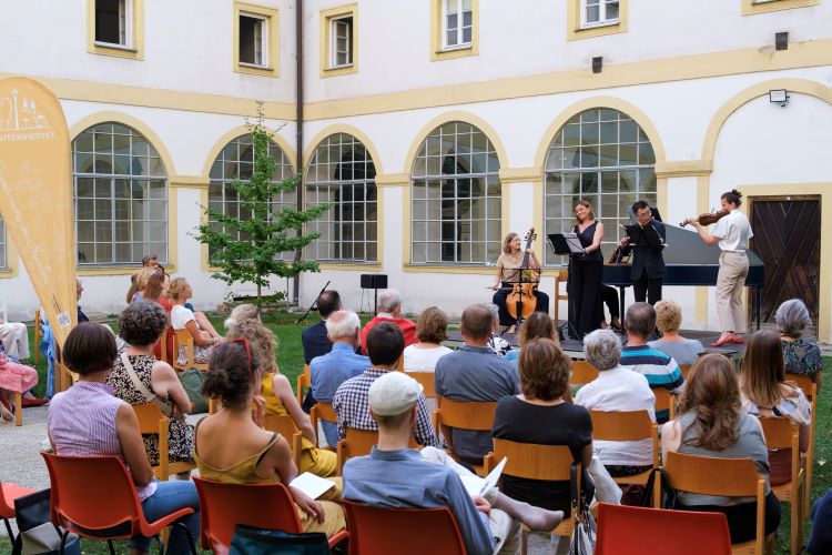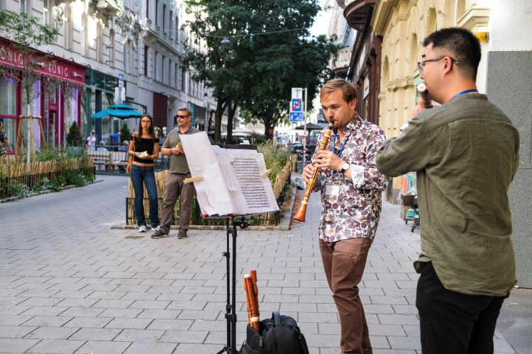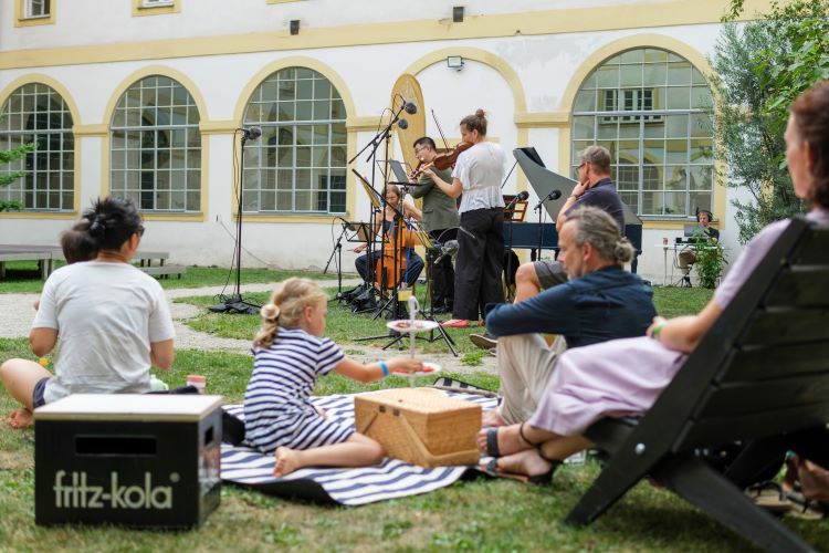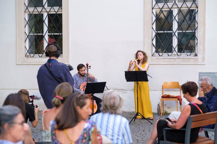 Auch die Mitmach-Events, wie das Babykonzert und das Kinderkonzert vor der Servitenkirche, bei denen Kinder ungewöhnliche Instrumente wie das Alphorn und das Kuhhorn entdecken und sogar spielen konnten waren für Jung und Alt höchst unterhaltsam. Der Tanzworkshop im Klosterinnenhof, bei dem das Publikum den barocken Tanz La Bourrée zu Live-Musik kennenlernen konnte, sowie das Picknick-Konzert, bei dem die Besucher:innen entspannt auf Liegestühlen oder Picknickdecken die Musik genossen, waren neue Formate, die bei allen Beteiligten große Begeisterung hervorriefen.