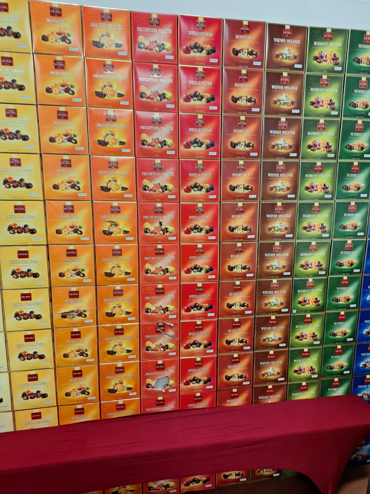 Zu den beliebtesten Produkten zählen ohne Zweifel Schokomaroni, Nussbeugel und Mandel Krokant, aber auch Gelee Genuss mit unterschiedlichem Fruchtgeschmack. Viele der angebotenen Süßigkeiten gibt es auch schon vegan. Übrigens, jetzt vor Ostern verlassen pro Tag ungefähr 12.000 Schokohäschen die Produktionsstätte, erzählte uns Michael Dunkl, Assistenz der Geschäftsleitung.