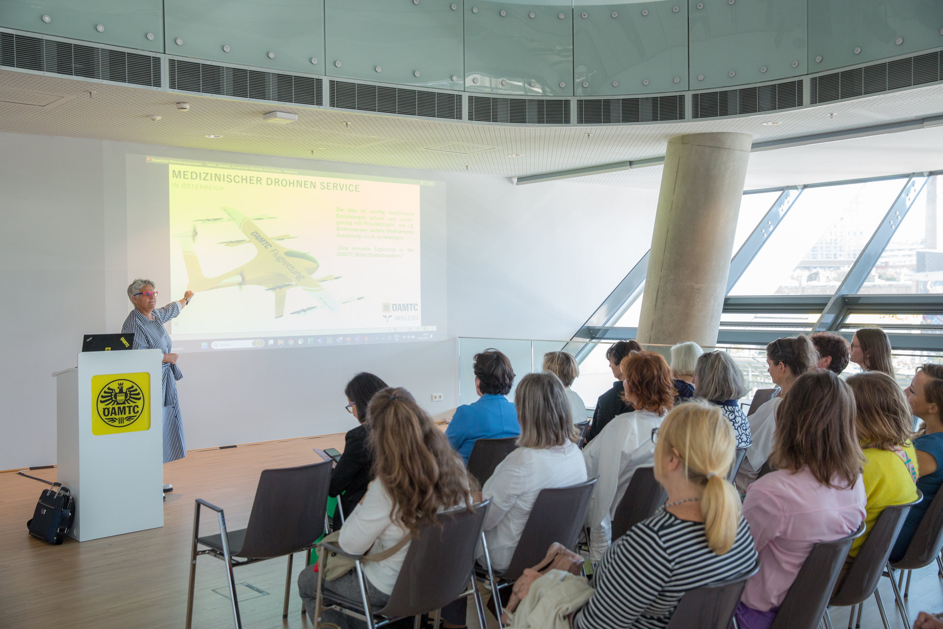 Neben dem fachlichen Input stand das Networking im Vordergrund. Zahlreiche Unternehmerinnen nutzten die Gelegenheit, sich auszutauschen und gemeinsam neue Visionen und Ideen zu entwickeln. Der Höhepunkt des Tages war eine exklusive Führung durch das beeindruckende ÖAMTC-Gelände, bei dem die Teilnehmerinnen das gesamte Haus erkunden konnten. Besonders beeindruckend: Der Landeplatz auf dem Dach des Gebäudes, wo sogar ein Hubschrauber besichtigt werden konnte.