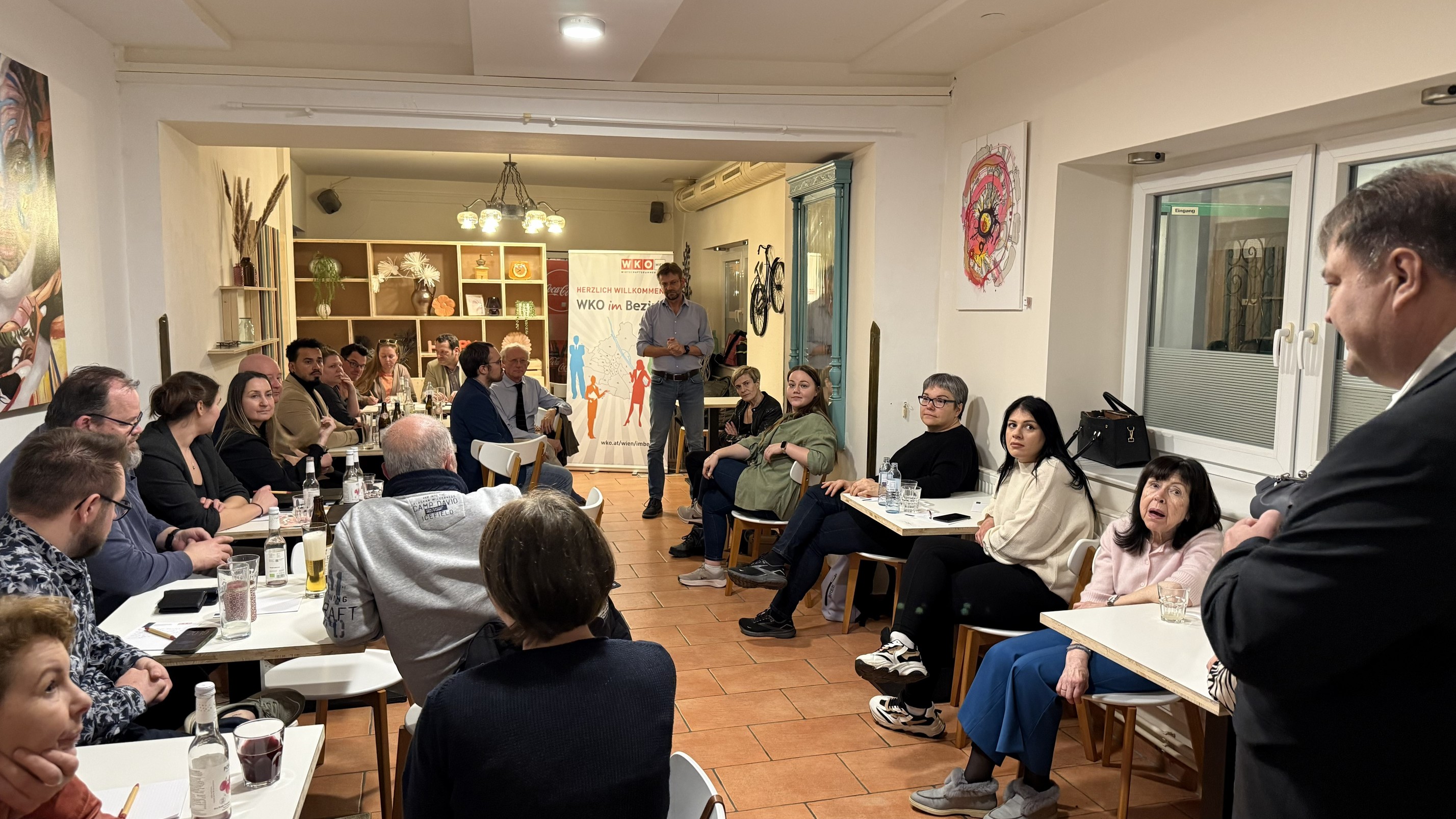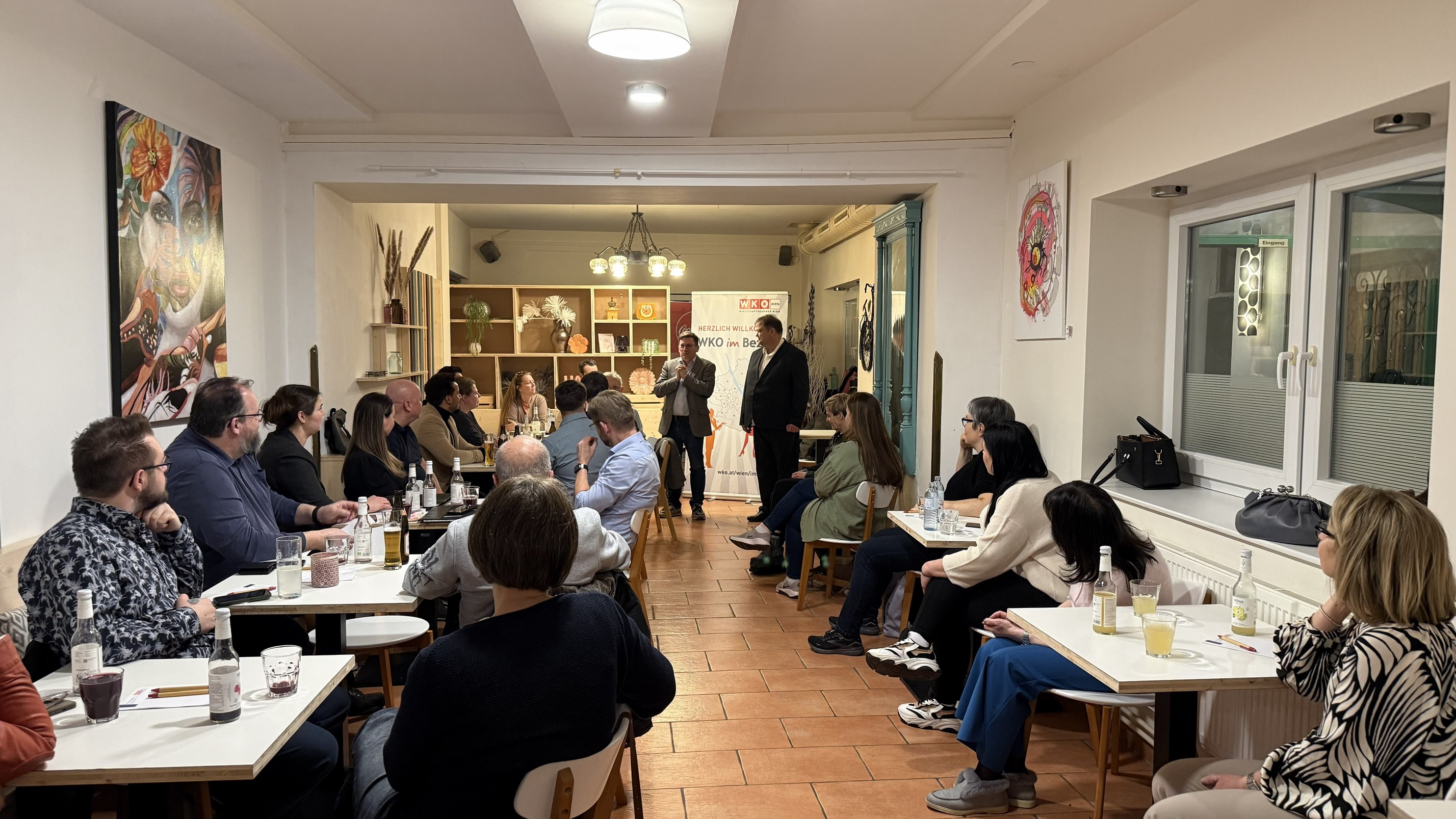 Begrüßt wurden die Gäste von Gastgeber WK Wien-Bezirksobmann Alexander Schotten und Bezirksvorsteher Wilfried Zankl, der die Bedeutung eines engen Schulterschlusses zwischen Wirtschaft, Polizei und Bezirk unterstrich. Beim anschließenden Netzwerken bei Snacks und Getränken wurde intensiv weiterdiskutiert und Visitenkarten wechselten die Besitzer.
