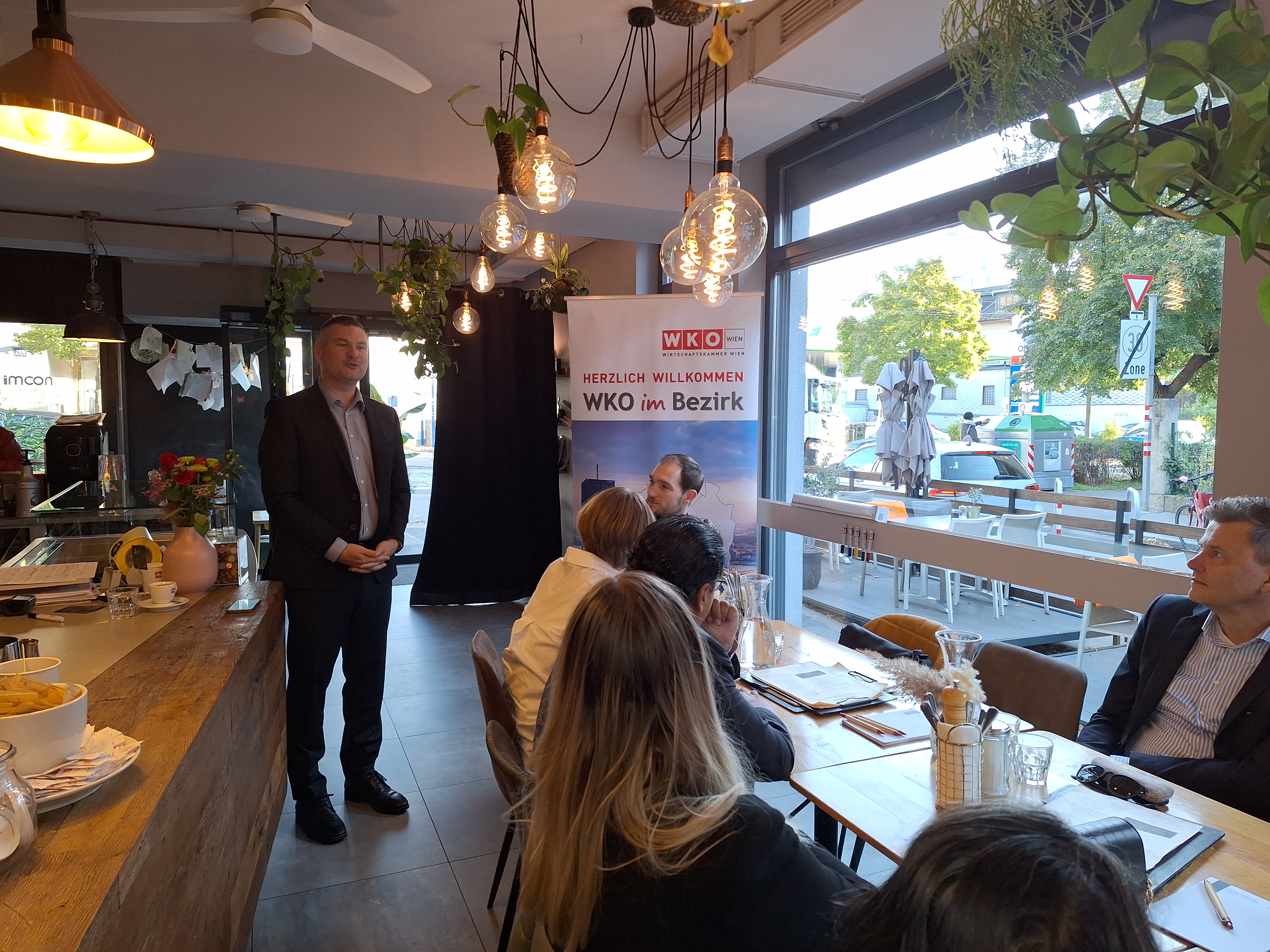 Am 29. September 2025 fand im gemütlichen Café Deli Noomi der WKOimBezirk-Sicherheitstalk in Penzing statt. Bezirksobmann Andreas Eisenbock begrüßte zahlreiche Unternehmer:innen aus dem 14. Bezirk zu einem informativen Morgen-Netzwerktreffen. Im Mittelpunkt stand das Thema Sicherheit im Herbst - ein Thema, das viele Betriebe in dieser Jahreszeit besonders beschäftigt.