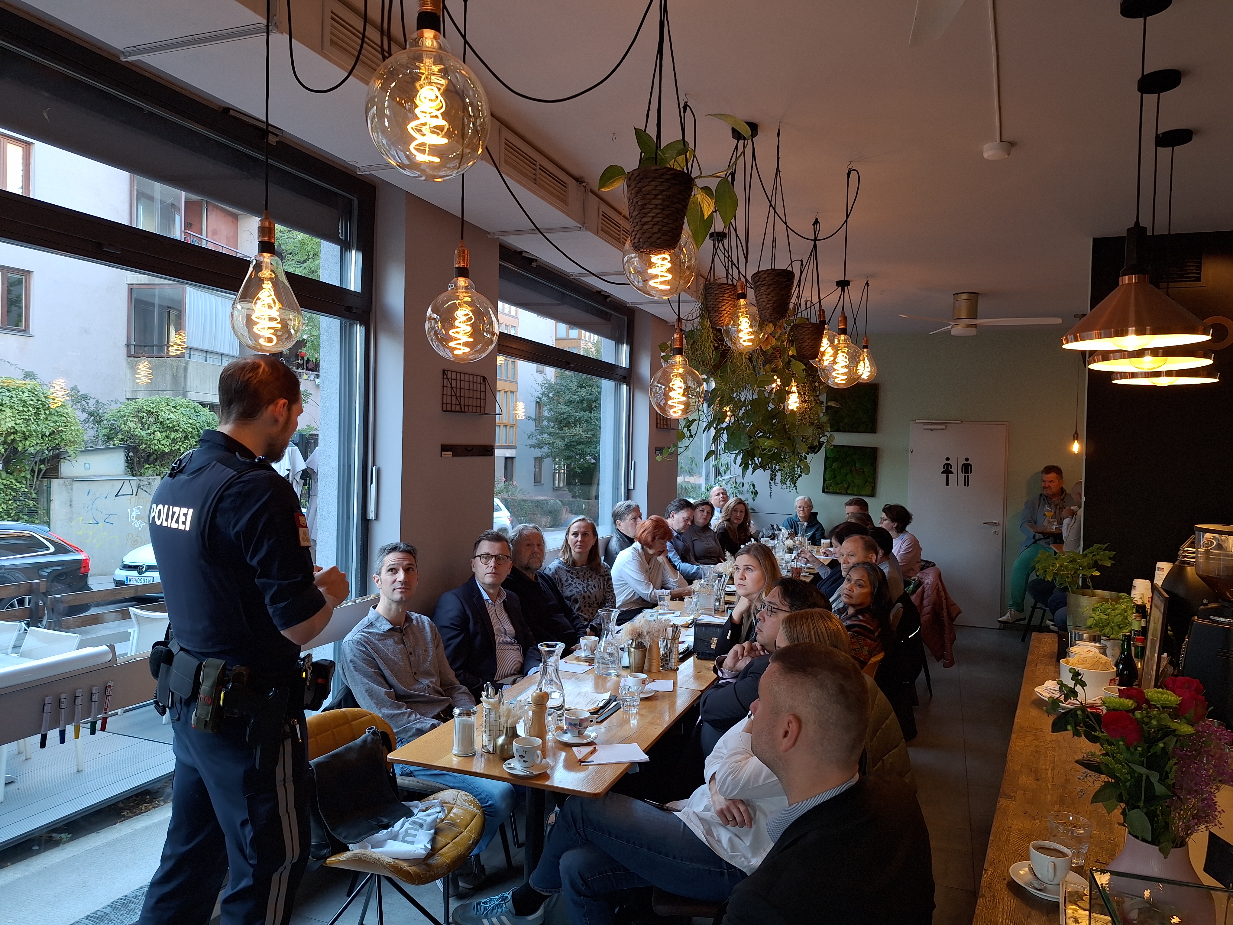 Im Anschluss an den Impulsvortrag nutzten die Gäste die Gelegenheit zum Austausch und Netzwerken in entspannter Atmosphäre. Die Unternehmer:innen schätzten die praxisnahen Tipps und das direkte Gespräch mit dem Sicherheitskoordinator. Der Sicherheitstalk machte deutlich: Bewusstes Handeln und Zusammenarbeit im Bezirk sind der beste Schutz für Betriebe und Anrainer gleichermaßen.
