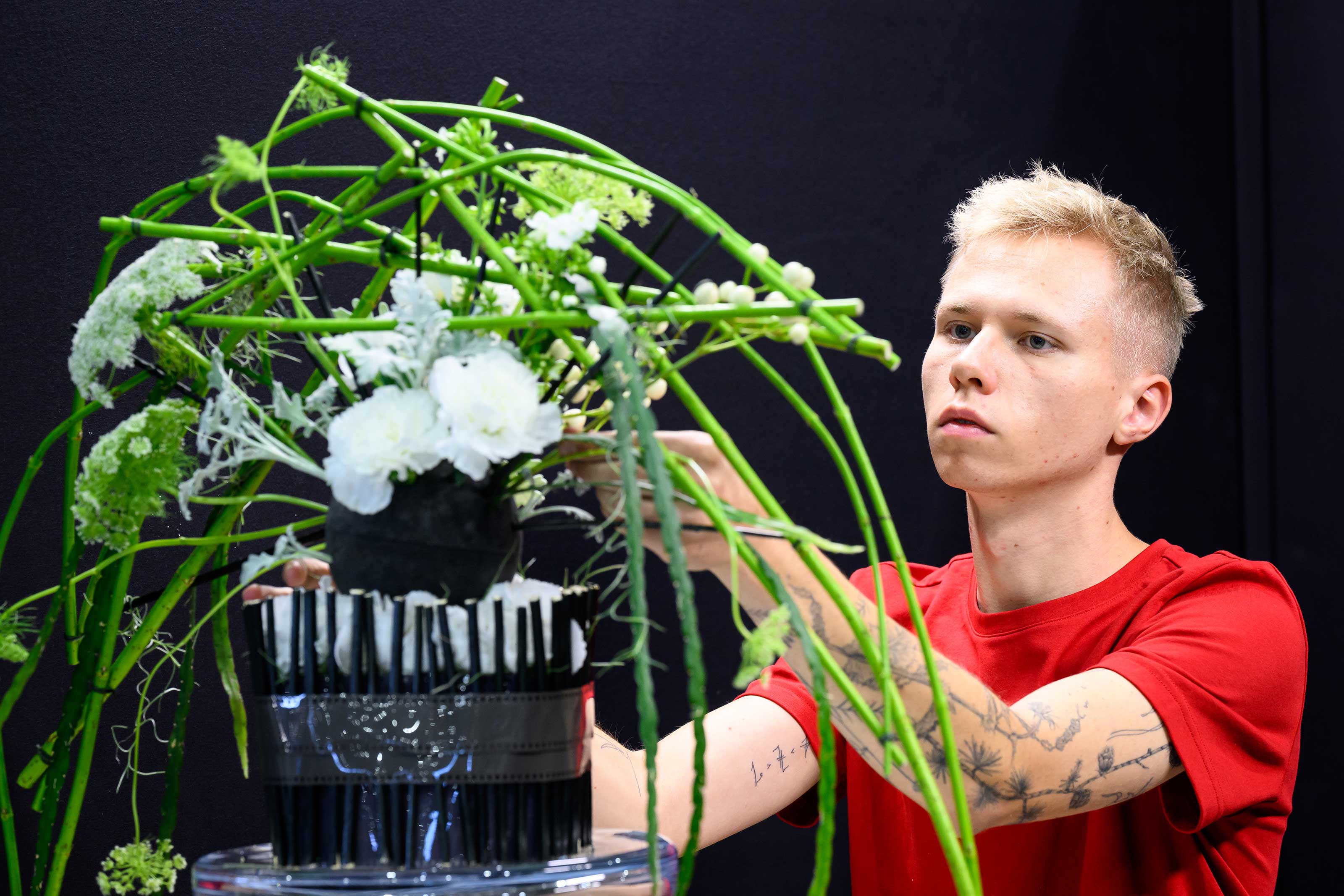 Im Wettbewerb Floristik mit insgesamt 20 Teilnehmer:innen konnte Manuel Bender mit seinen farbenfrohen und handwerklich hervorragenden Werkstücken die internationale Jury überzeugen und wurde gestern Abend mit der Goldmedaille für seine Kreativität, sein Engagement und seine Nervenstärke belohnt.