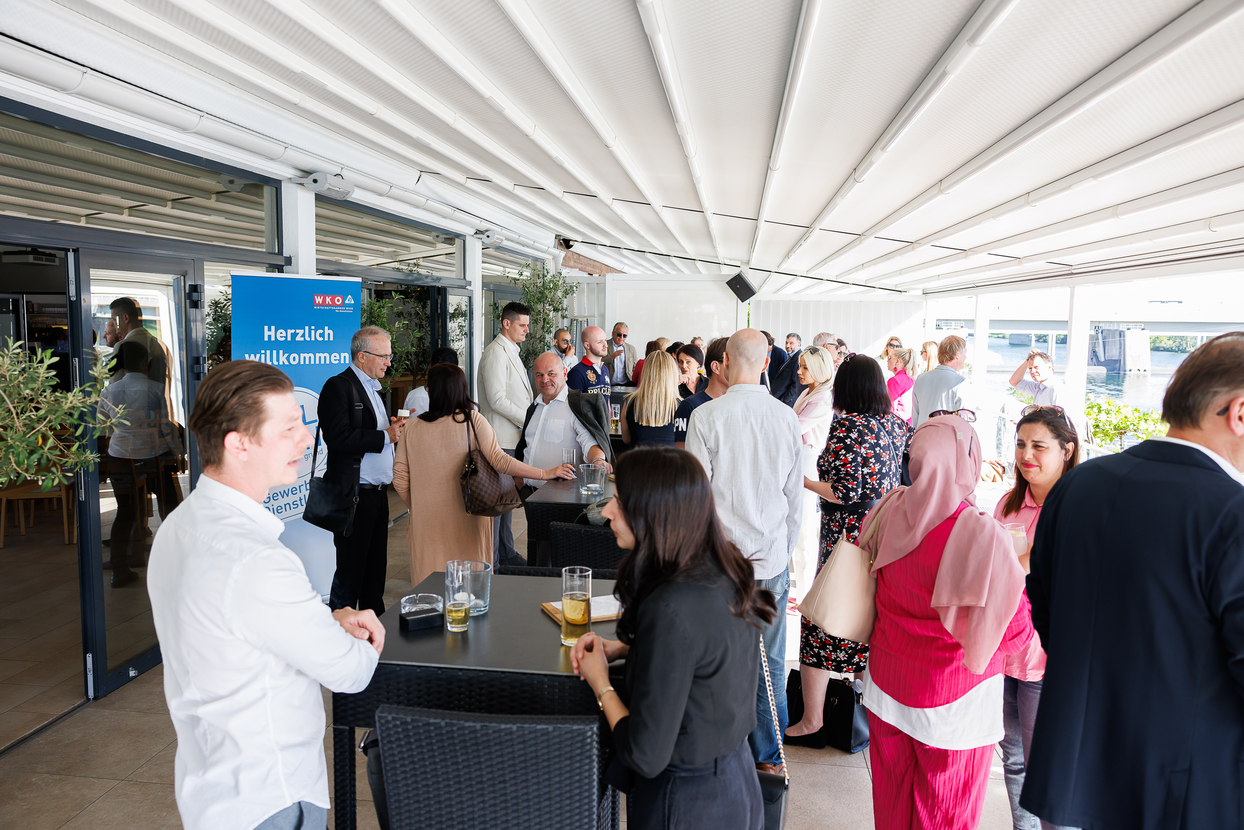 Am 14.05.2024 fand der sommerliche Branchentreff der Personaldienstleister im Restaurant Wake Up an der neuen Donau statt. Geschäftsführerin des What’s Next Institute Elisabeth Mayerhofer animierte die Teilnehmer:innen, sich über mögliche Arten der Zukunft der Branche auszutauschen. Das Wetter konnte wohl kaum besser sein – die Gäste unterhielten sich bei strahlend blauem Himmel und Sonnenschein. Dabei ließen kulinarische Genüsse den frühsommerlichen Abend ausklingen.