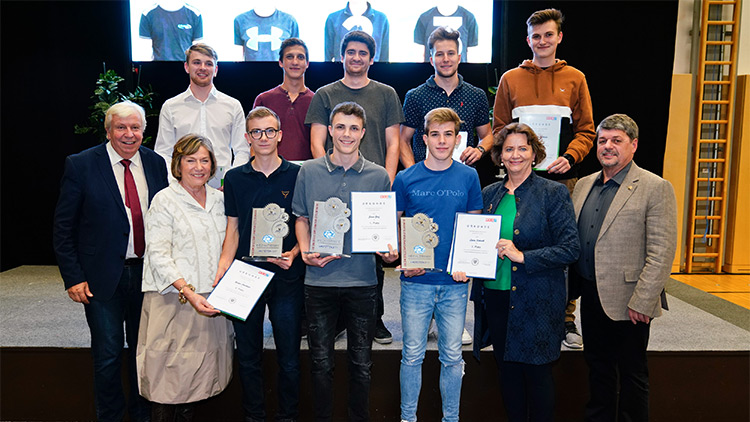 v.l.n.r. 1. Reihe: NÖ Bildungsdirektor Hofrat Mag. Johann Heuras, WKNÖ-Präsidentin KommR Sonja Zwazl, Gregor Litschauer (2. Platz), Bundessieger Josua Graf, Lucas Schiechl (3. Platz), Bundesspartenobfrau Gewerbe und Handwerk KommR Ing. Renate Scheichelbauer-Schuster, Bundesinnungsmeister der Mechatroniker KommR Ing. Robert Heiszenberger