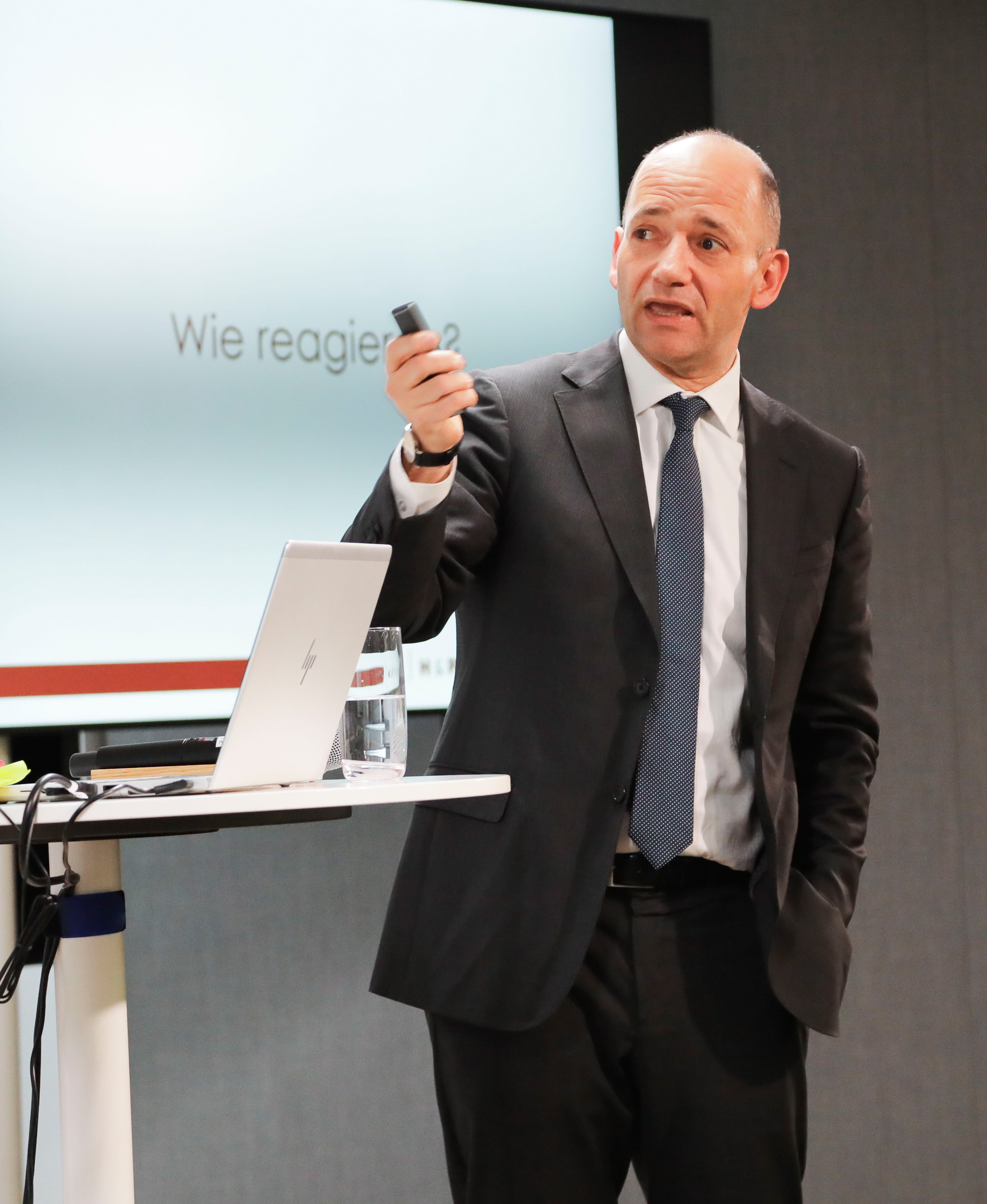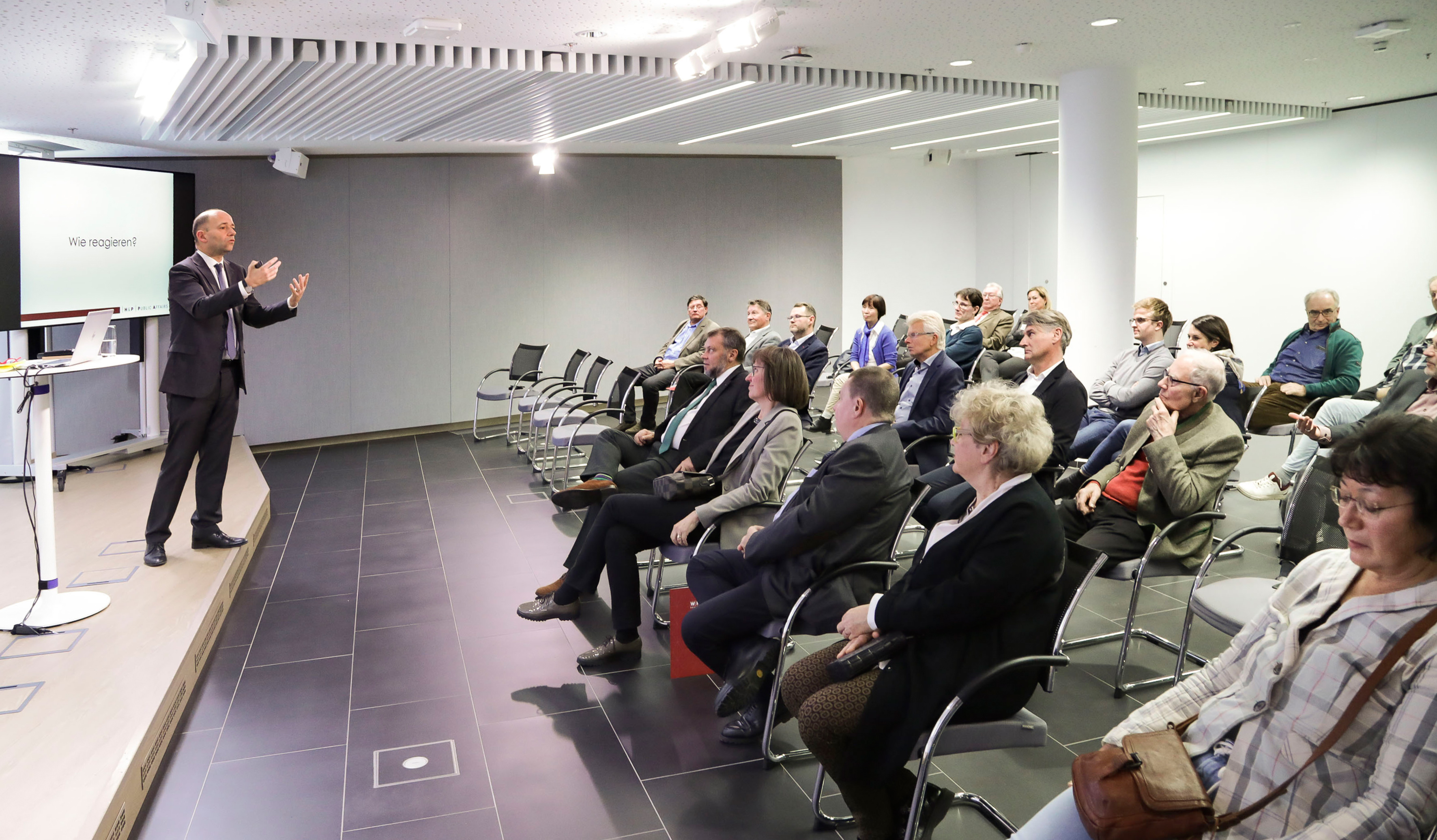 Nach der Mitgliederehrung startete der Fachvortrag "Ohne Emotionen geht nichts mehr. Wie die Wirtschaft auf die Politik reagieren muss."
