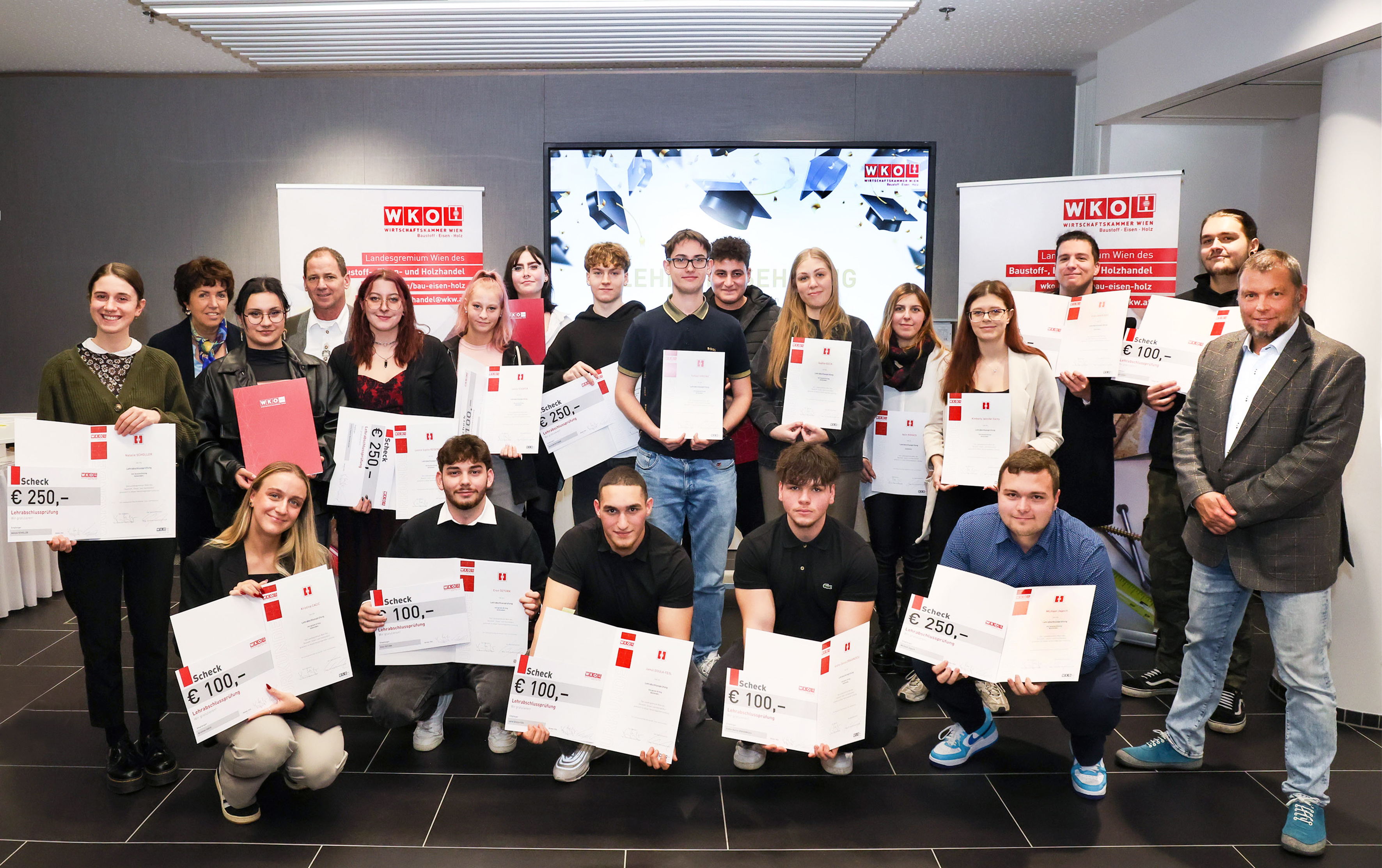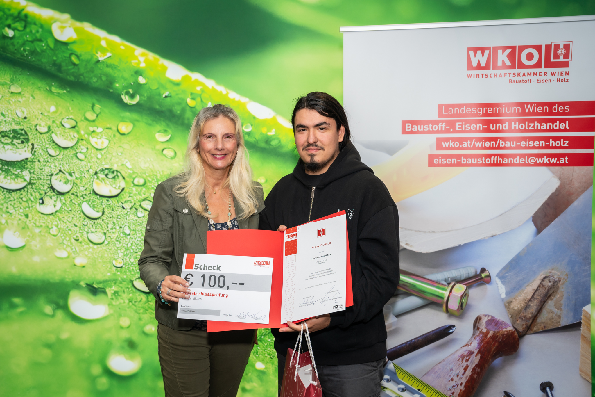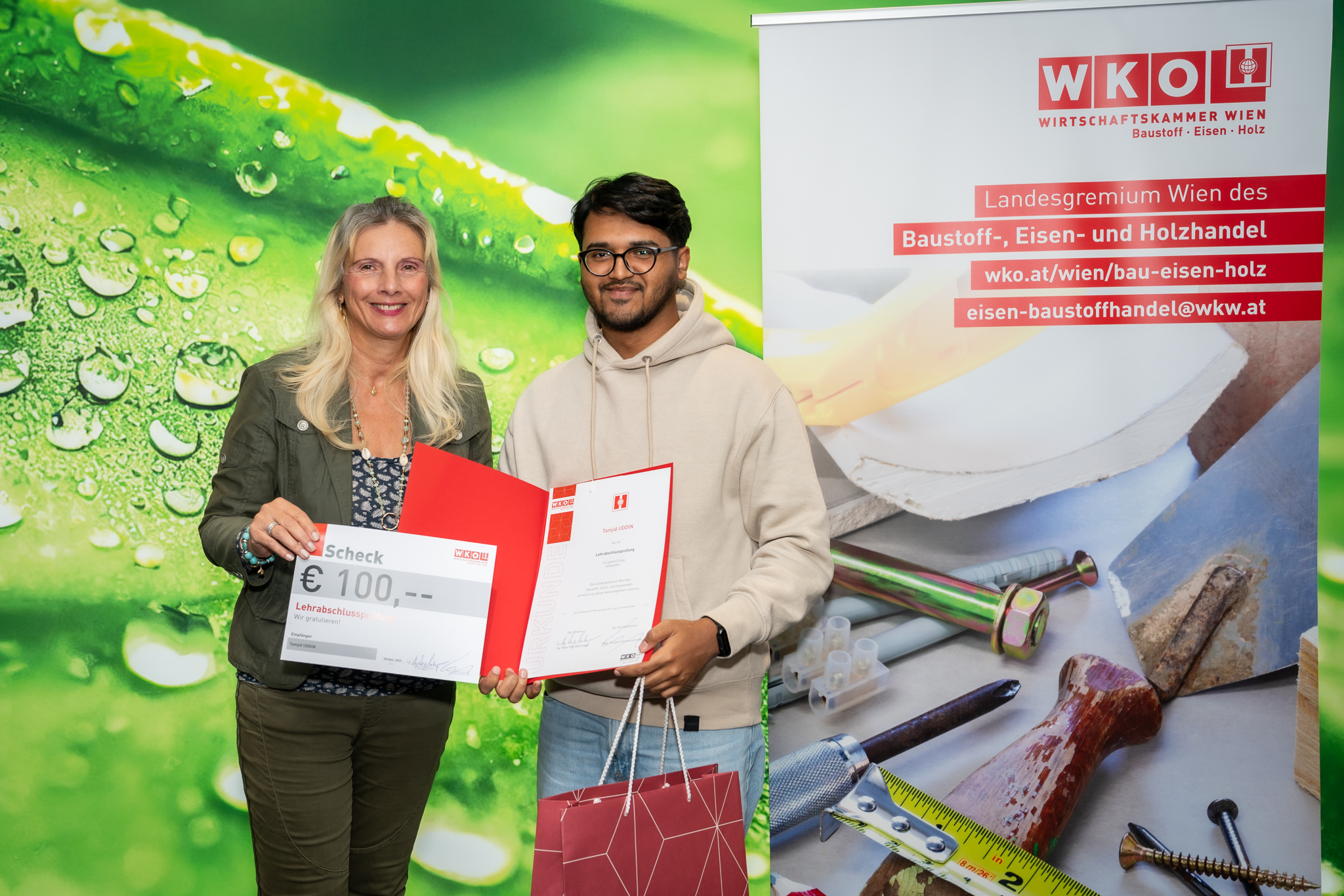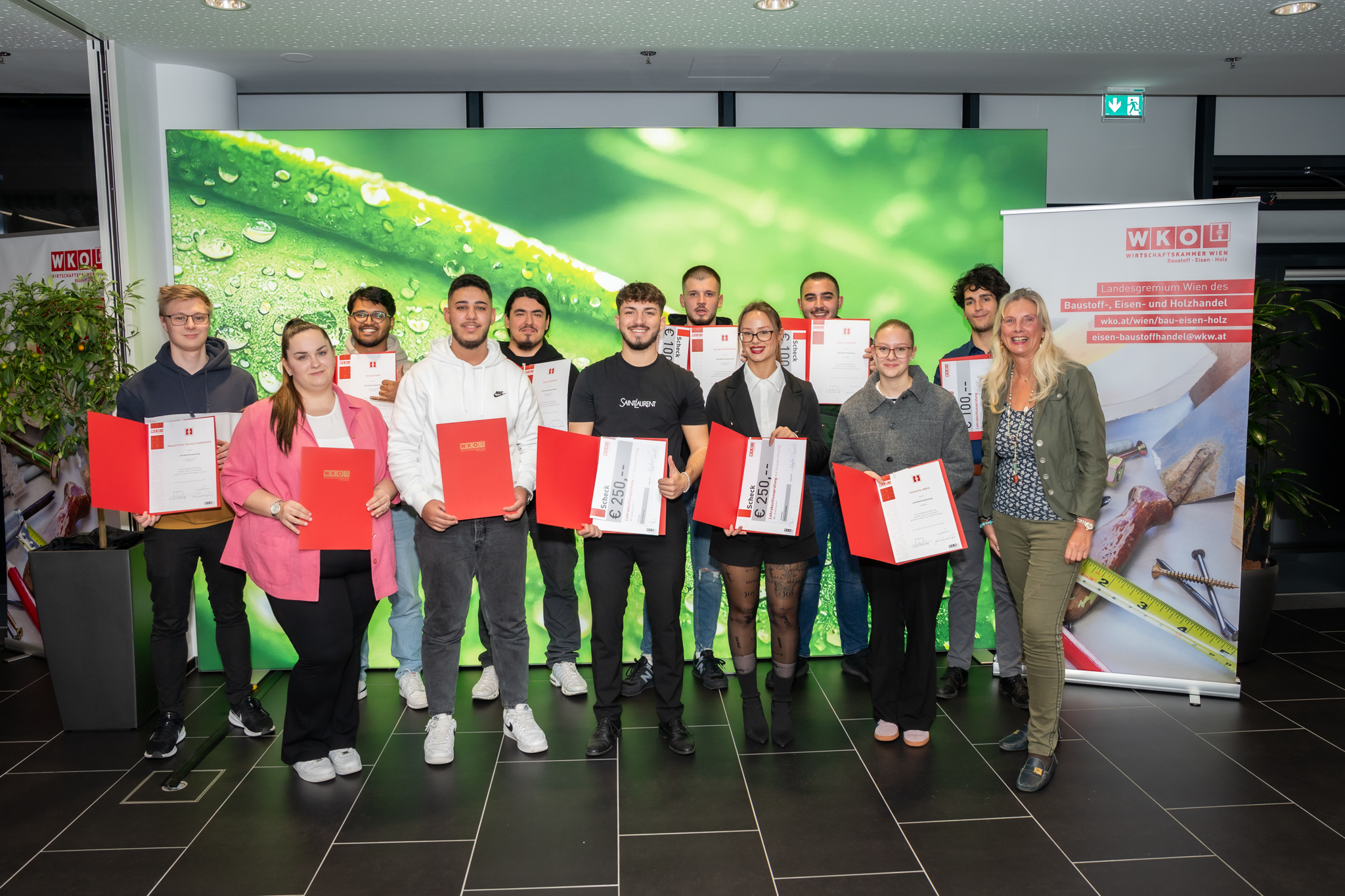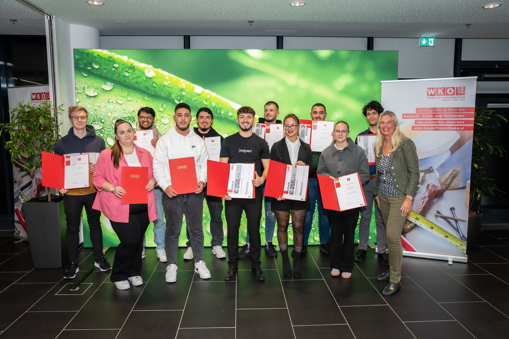 Insgesamt 42 Damen und Herren haben 2024 ihre Lehrabschlussprüfung erfolgreich bestanden, 13 davon mit Auszeichnung. Obmann Ing. Klaus Schmidtschläger, überreichte gemeinsam mit der Vorsitzenden der Berufsgruppe Handel mit Baustoffen und Flachglas, Frau Andrea Schabel-Fuchs, nach einer kleinen Ansprache jeweils eine Urkunde, einen Scheck zur Einlösung einer Prämie von 100 Euro bzw. 250 Euro für die Auszeichnungen, sowie kleine Geschenke und sprach den Anwesenden die besten Glückwünsche für ihre Zukunft aus.