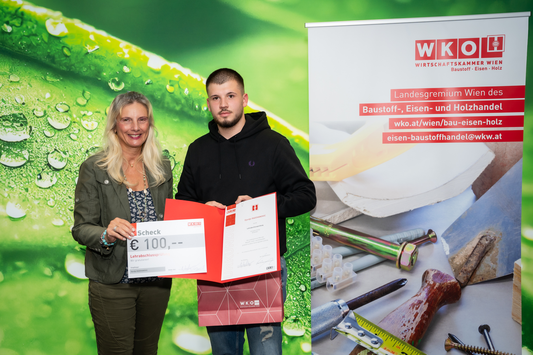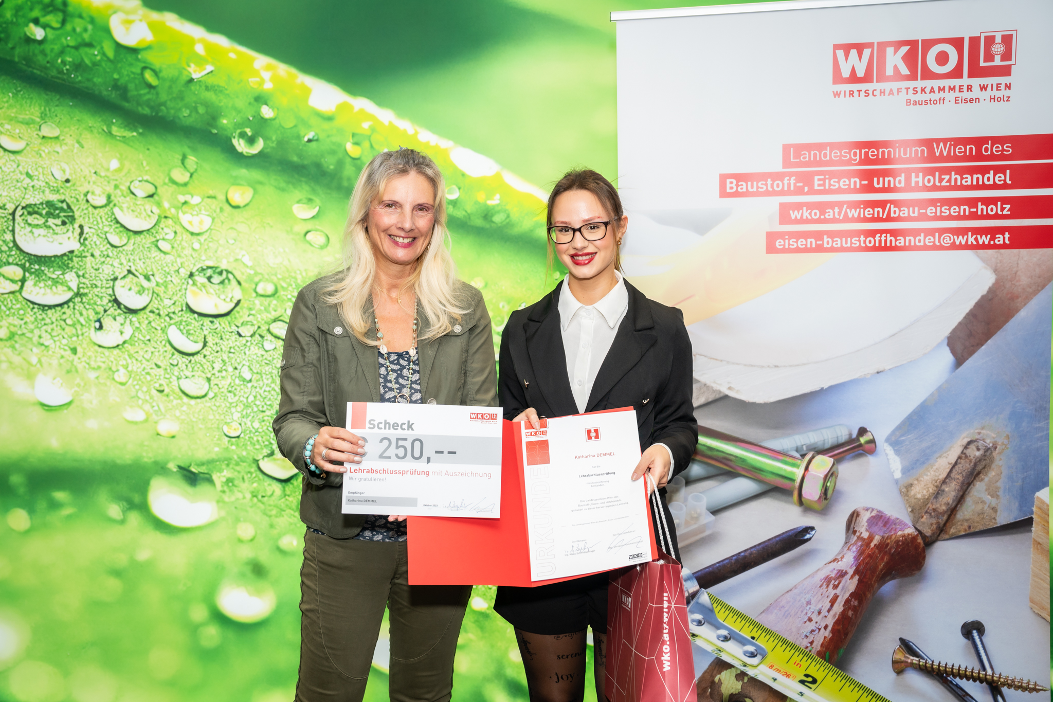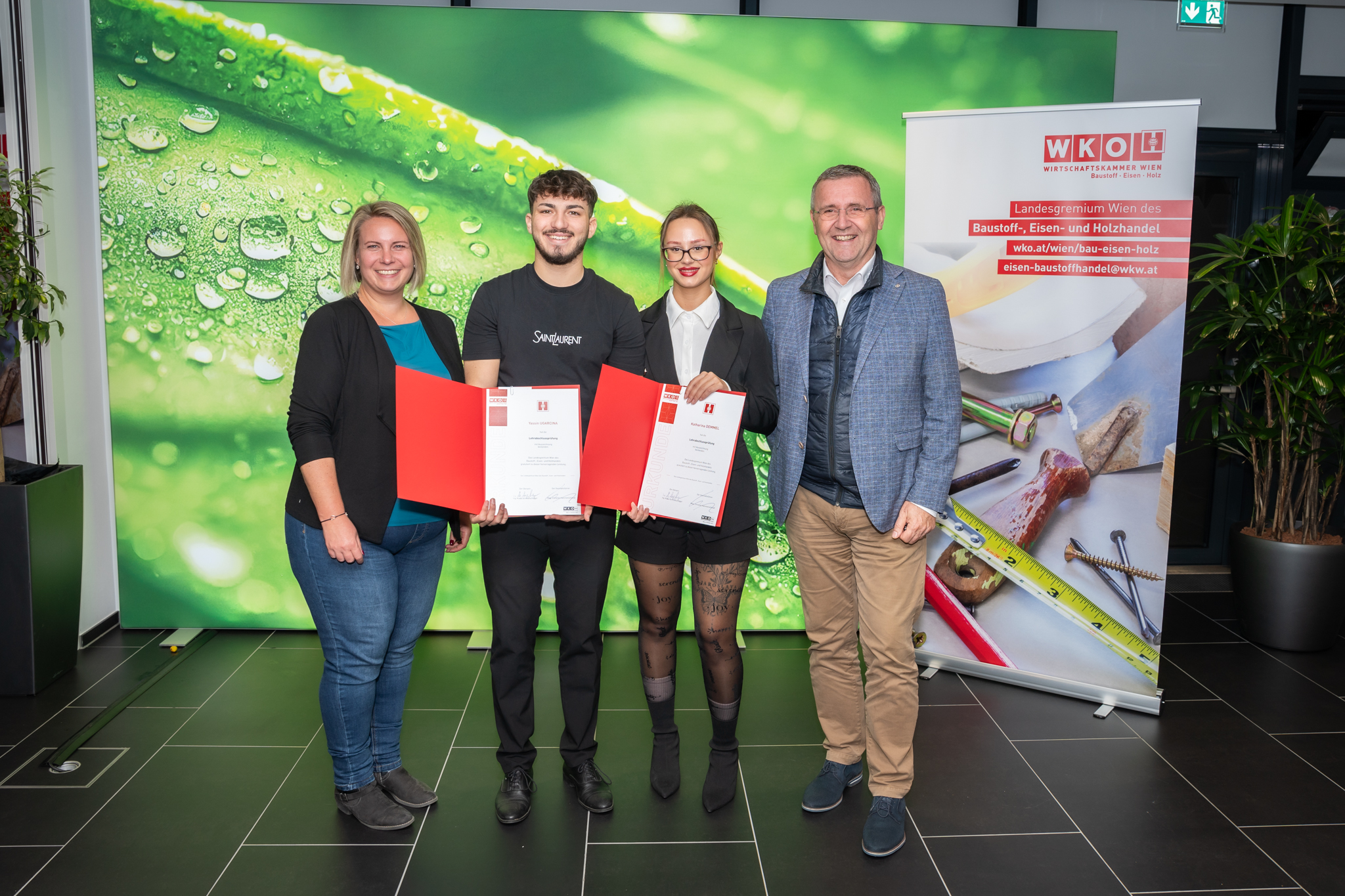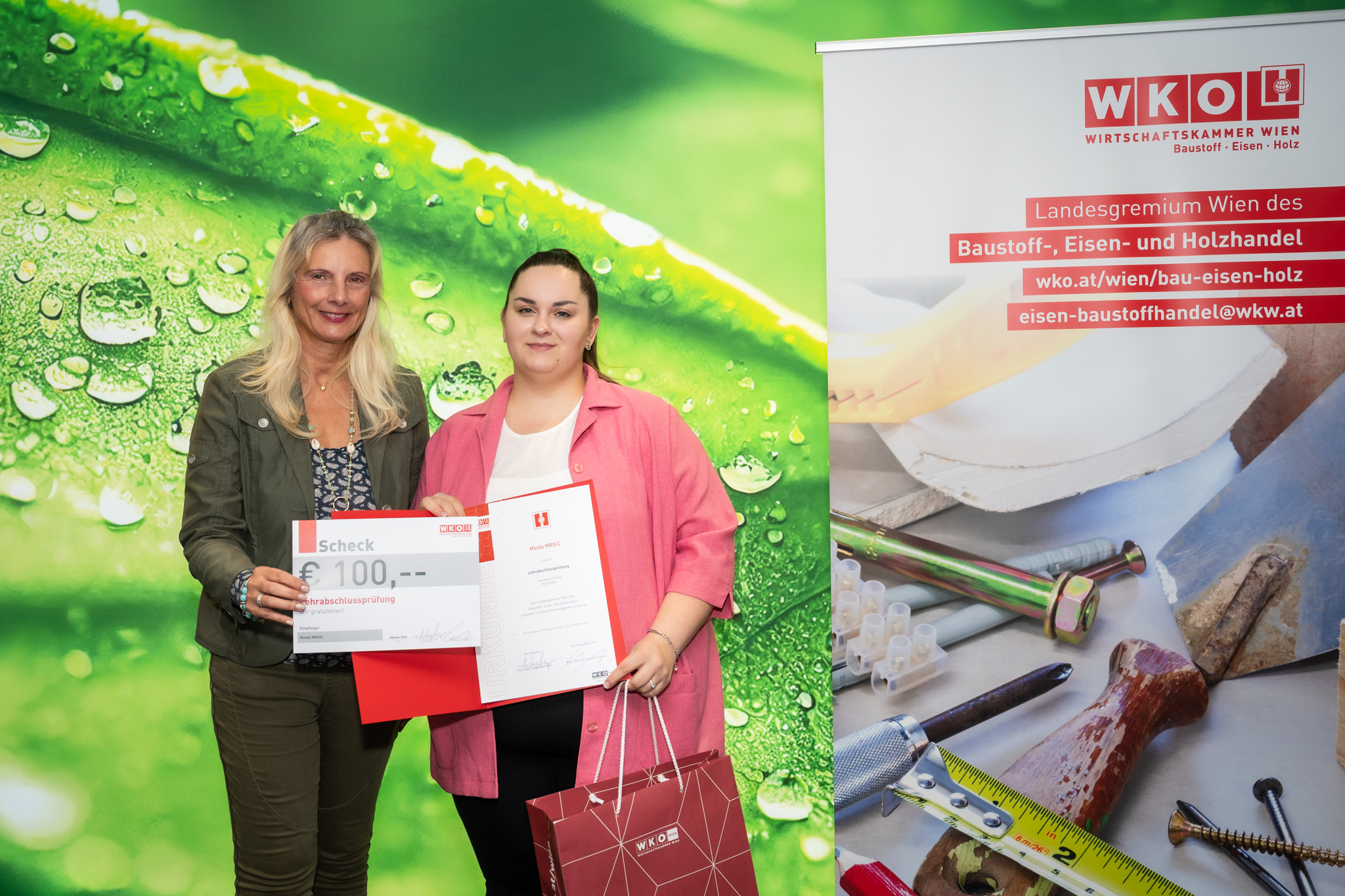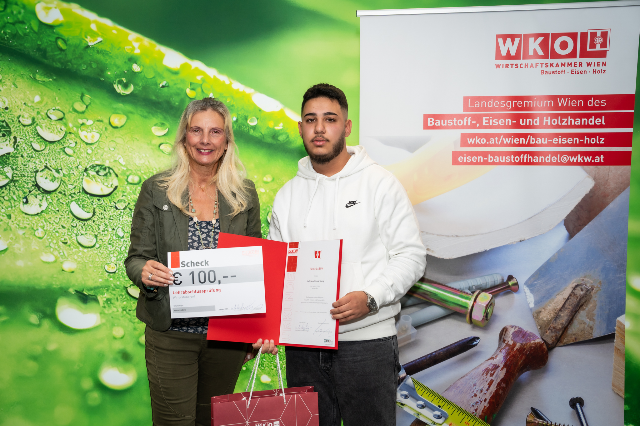 Insgesamt 42 Damen und Herren haben 2024 ihre Lehrabschlussprüfung erfolgreich bestanden, 13 davon mit Auszeichnung. Obmann Ing. Klaus Schmidtschläger, überreichte gemeinsam mit der Vorsitzenden der Berufsgruppe Handel mit Baustoffen und Flachglas, Frau Andrea Schabel-Fuchs, nach einer kleinen Ansprache jeweils eine Urkunde, einen Scheck zur Einlösung einer Prämie von 100 Euro bzw. 250 Euro für die Auszeichnungen, sowie kleine Geschenke und sprach den Anwesenden die besten Glückwünsche für ihre Zukunft aus.