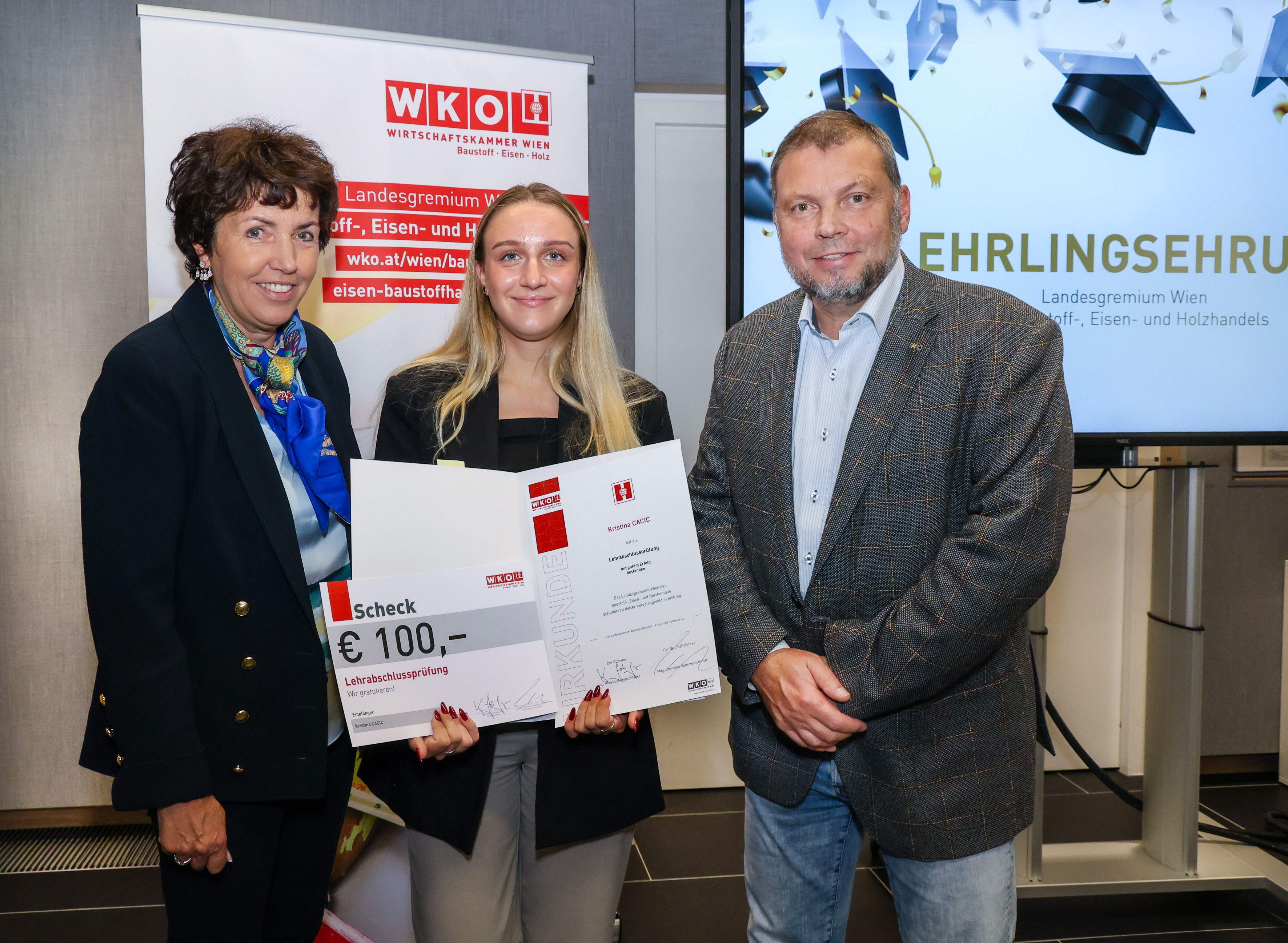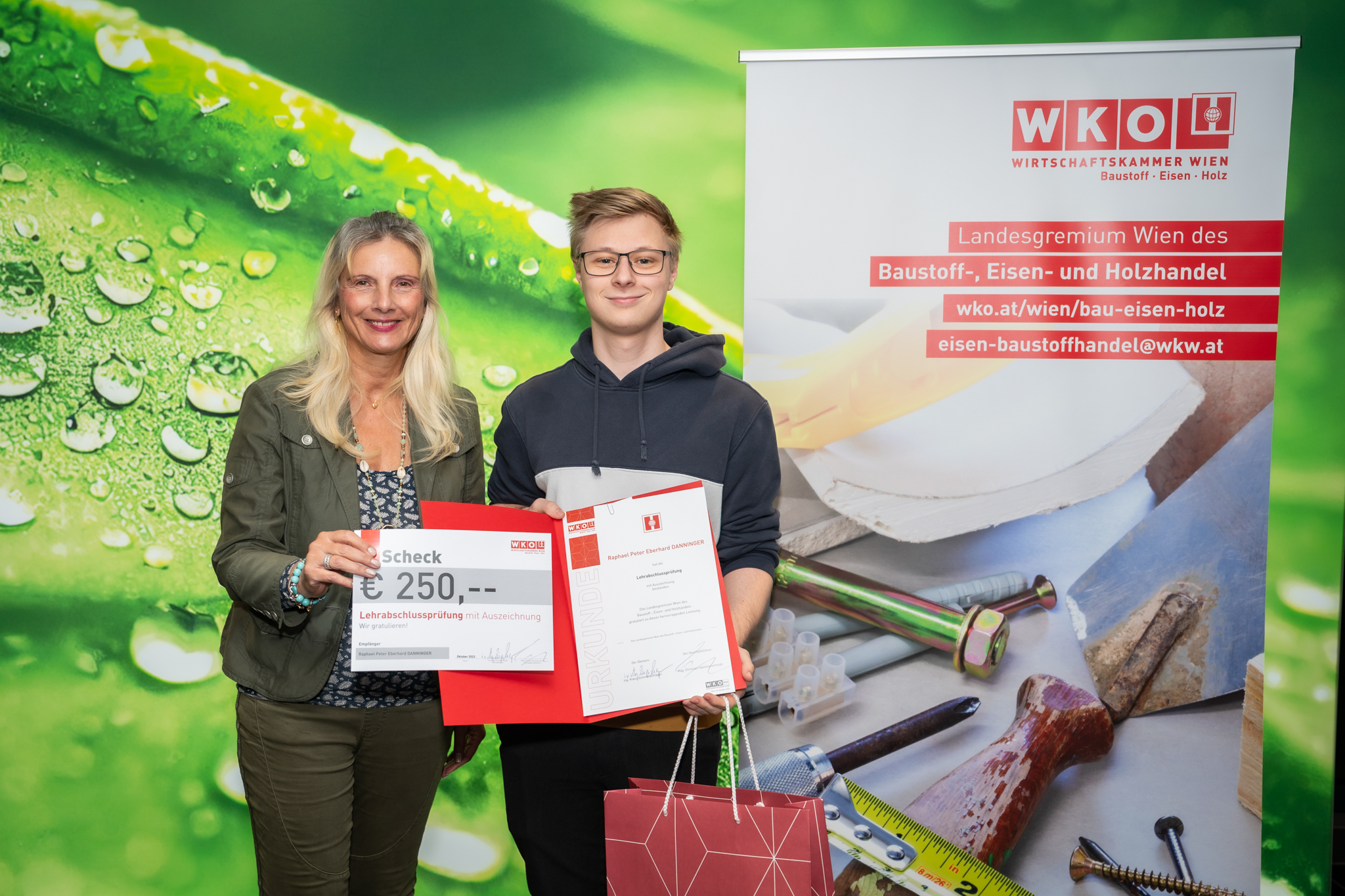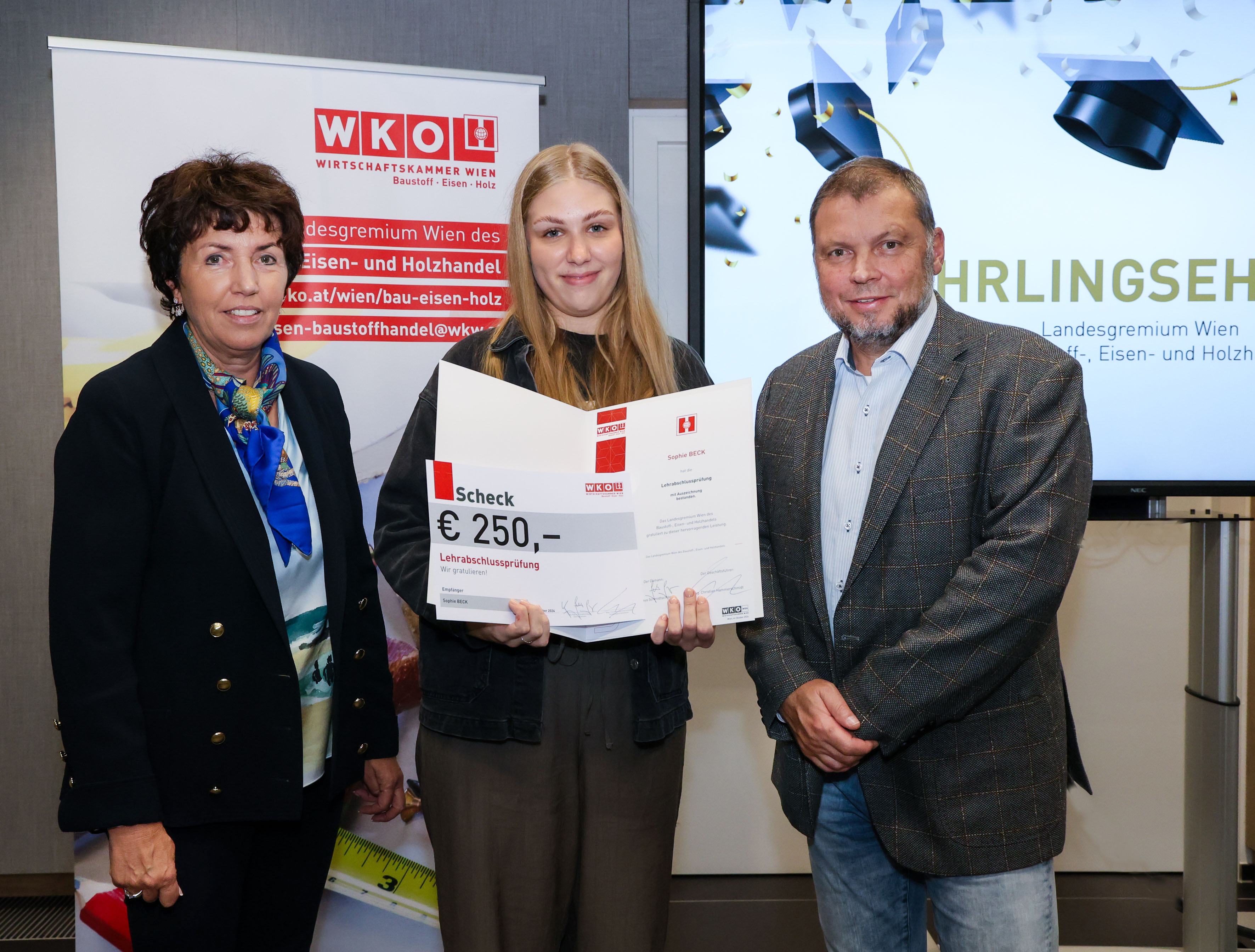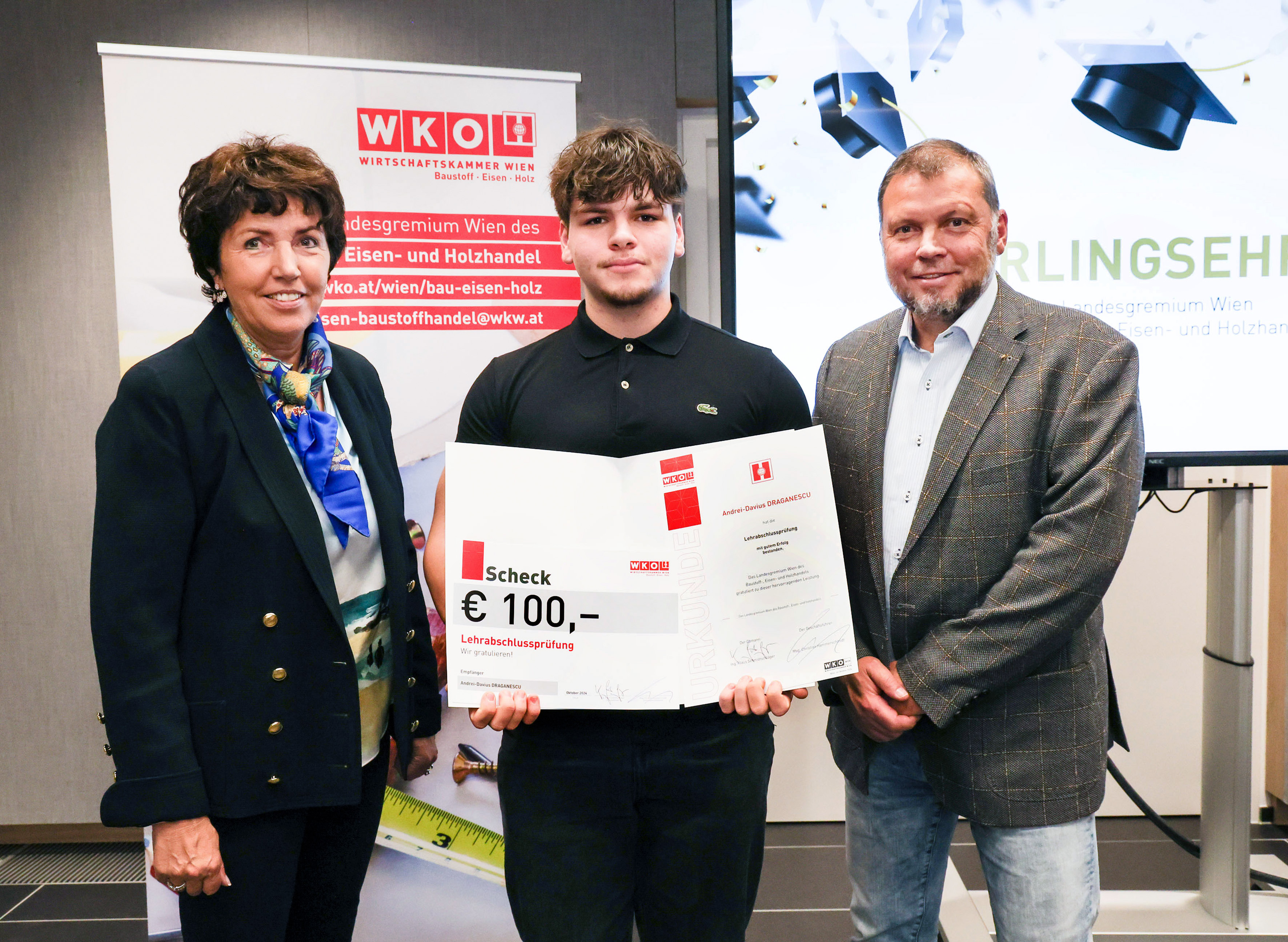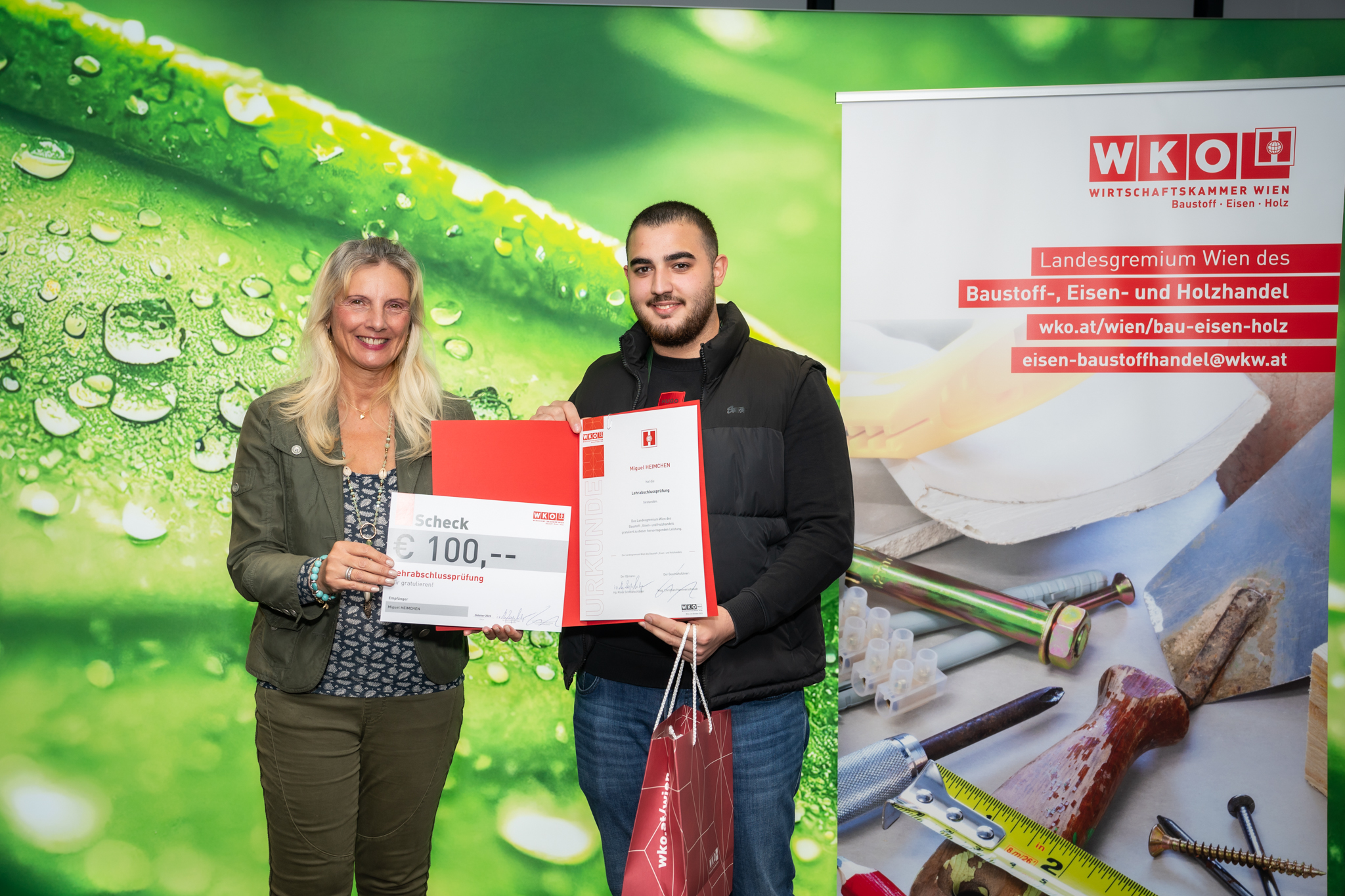 Insgesamt 42 Damen und Herren haben 2024 ihre Lehrabschlussprüfung erfolgreich bestanden, 13 davon mit Auszeichnung. Obmann Ing. Klaus Schmidtschläger, überreichte gemeinsam mit der Vorsitzenden der Berufsgruppe Handel mit Baustoffen und Flachglas, Frau Andrea Schabel-Fuchs, nach einer kleinen Ansprache jeweils eine Urkunde, einen Scheck zur Einlösung einer Prämie von 100 Euro bzw. 250 Euro für die Auszeichnungen, sowie kleine Geschenke und sprach den Anwesenden die besten Glückwünsche für ihre Zukunft aus.