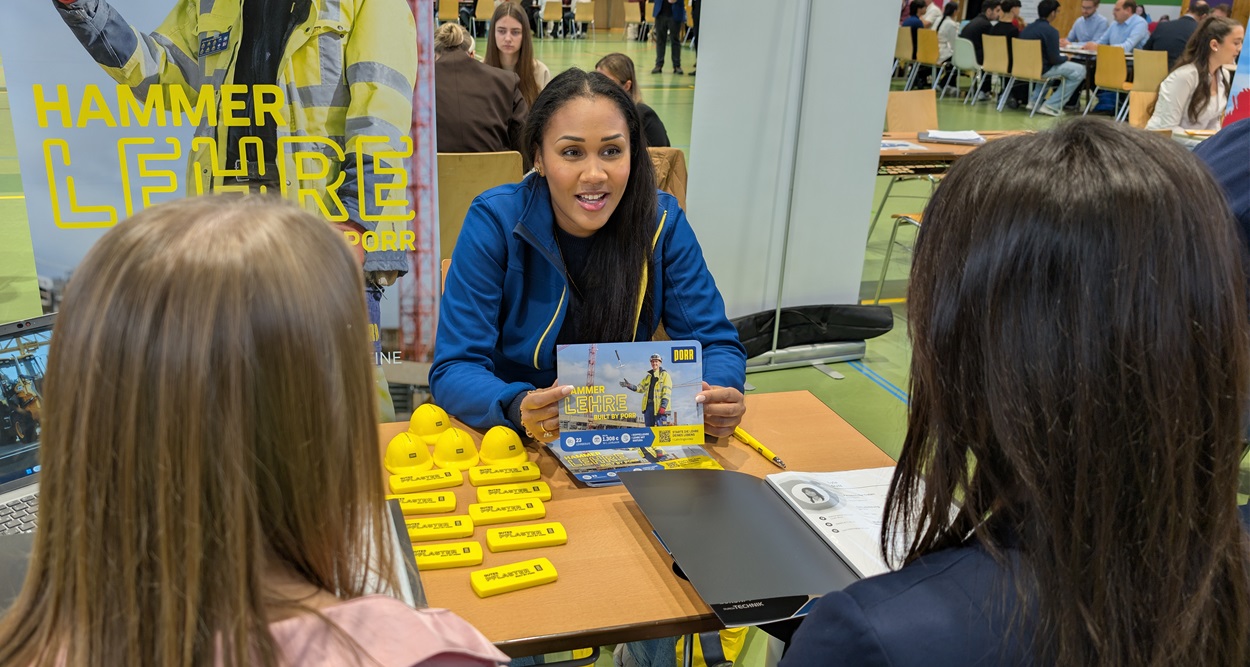 In zahlreichen Gesprächen mit den top-vorbereiteten Jugendlichen konnte Kathi (Anm.: HR-Lehrlingsbeauftragte Katharina Woisetschläger) unsere Arbeitgebermarke vorstellen und aufzeigen, welche Karrieremöglichkeiten Tchibo zu bieten hat.