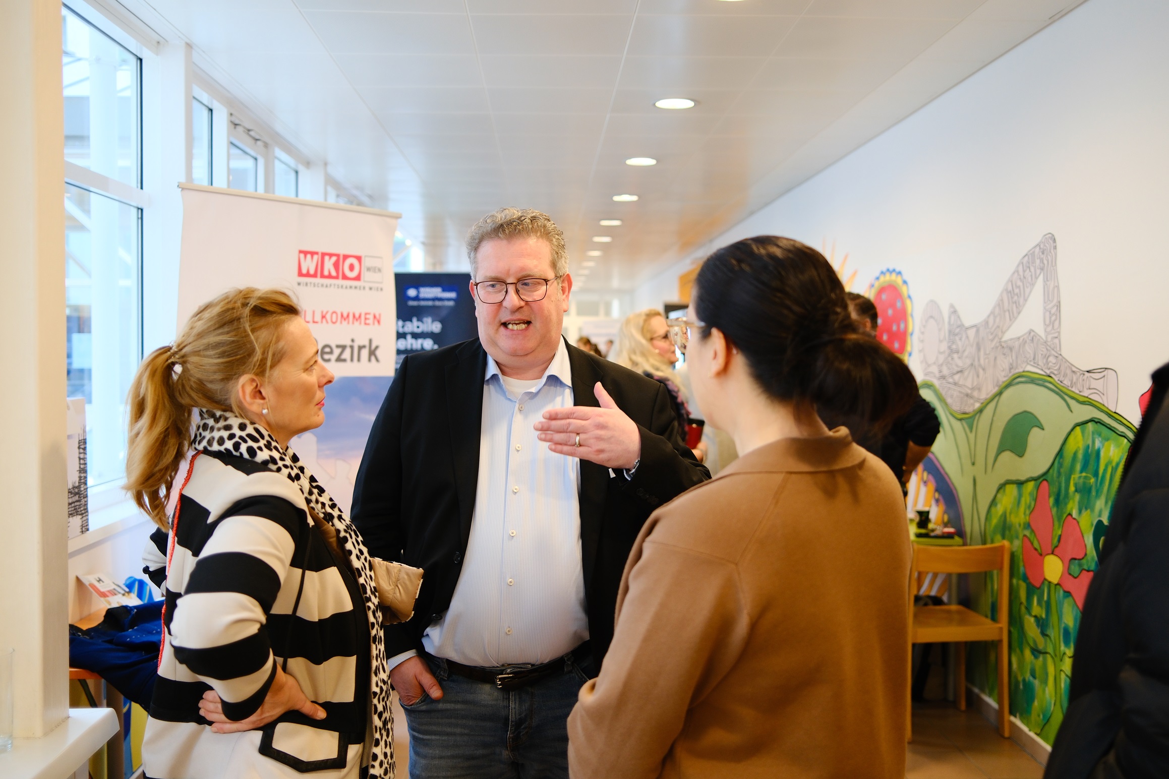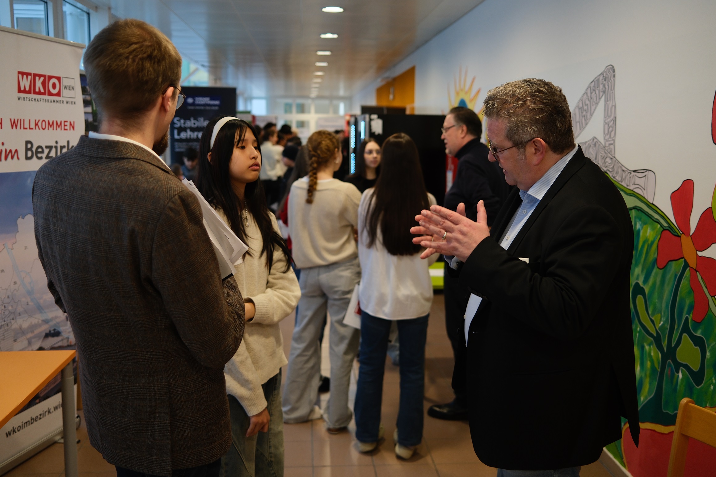 Bezirksvorsteher Mag. Markus Reiter ließ es sich nicht nehmen, die Karrieremesse persönlich zu besuchen und sich von der Vielfalt der präsentierten Ausbildungsmöglichkeiten zu überzeugen.