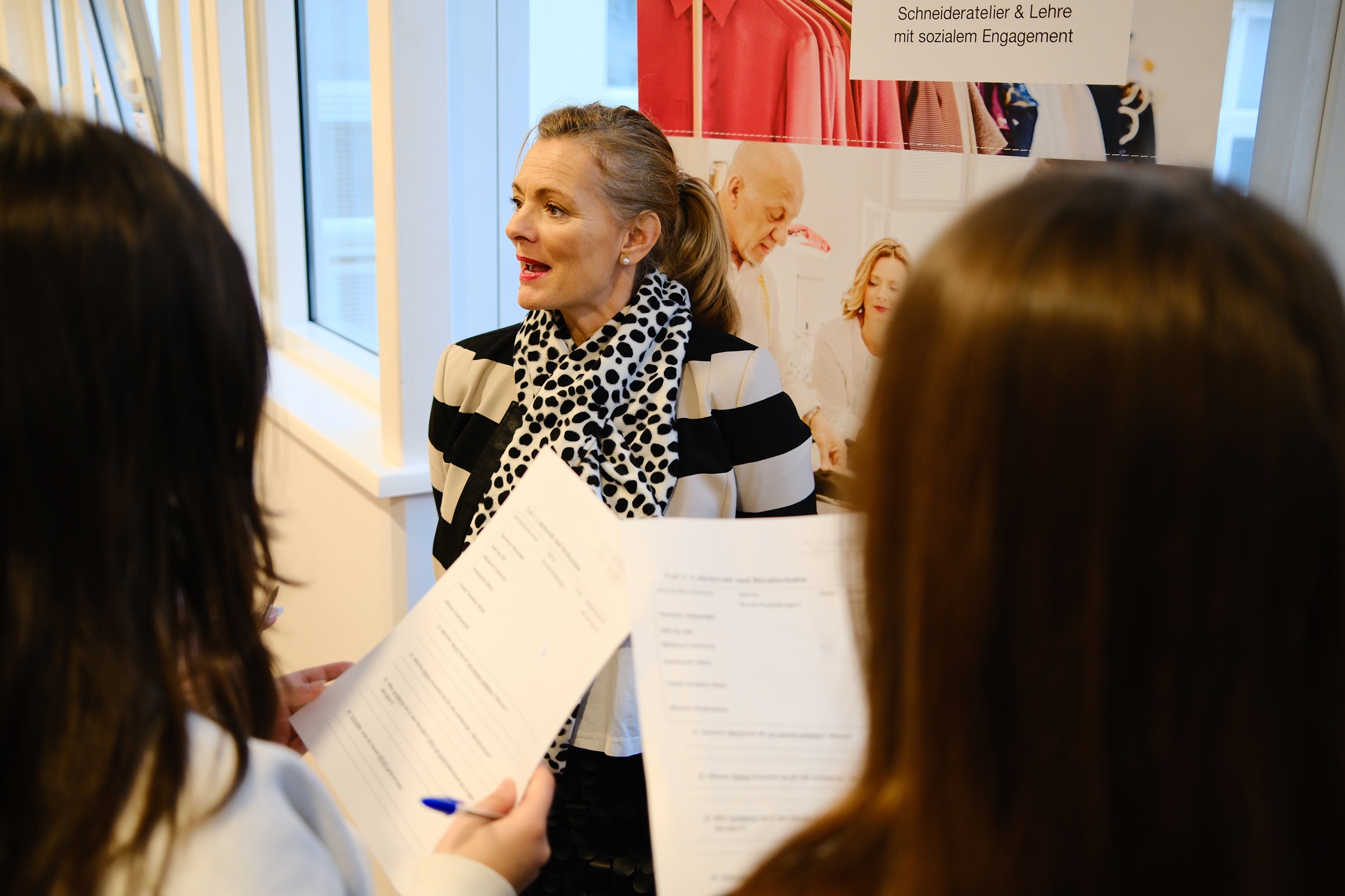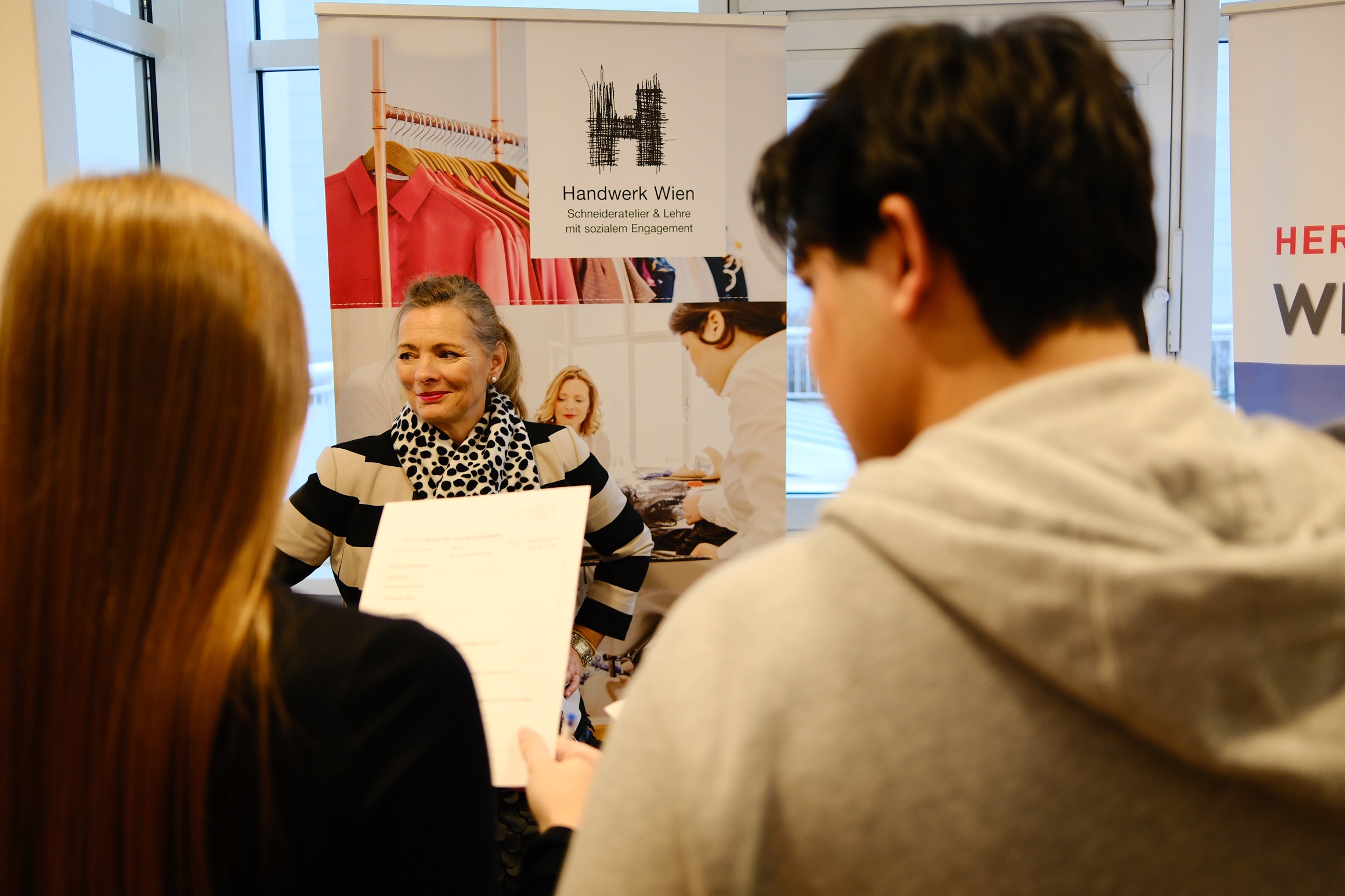 Auch das Schneideratelier Handwerk Wien mit Geschäftsführerin Beatrix Standl präsentierte sich als attraktiver Ausbildungsbetrieb. Das im 7. Bezirk ansässige Atelier bietet Lehrstellen für angehende Kleidermacher und zeichnet sich durch sein soziales Engagement aus. Neben der regulären Lehrzeit ermöglicht der Betrieb auch Jugendlichen mit erschwerten Zugangsbedingungen zum Arbeitsmarkt eine Ausbildung in verlängerter Lehrzeit. Das Schneideratelier fertigt Änderungen, Maßanfertigungen und Kleinserien in höchster handwerklicher Qualität.