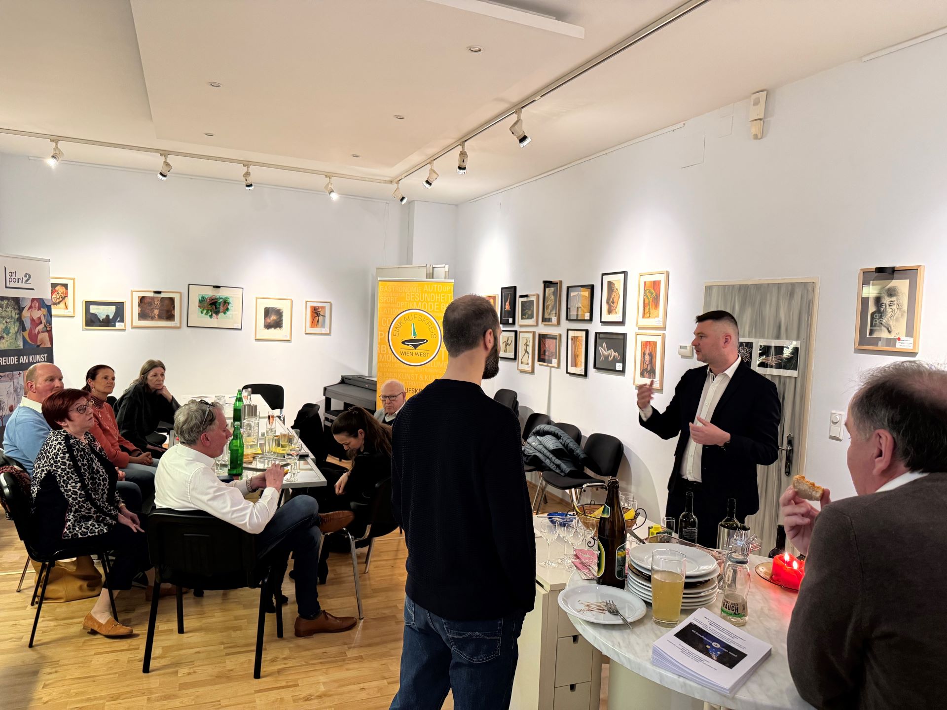 Mit den ersten Frühlingsboten lud der Einkaufskreis Wien West zu seinem traditionellen Afterwork-Treffen in die Galerie Artpoint 222 in der Hütteldorfer Straße ein. Zahlreiche Unternehmer:innen aus dem Grätzel nutzten die Gelegenheit, in entspannter Atmosphäre miteinander ins Gespräch zu kommen, Kontakte zu vertiefen oder neue zu knüpfen und sich über aktuelle Entwicklungen des lokalen Wirtschaftslebens auszutauschen.