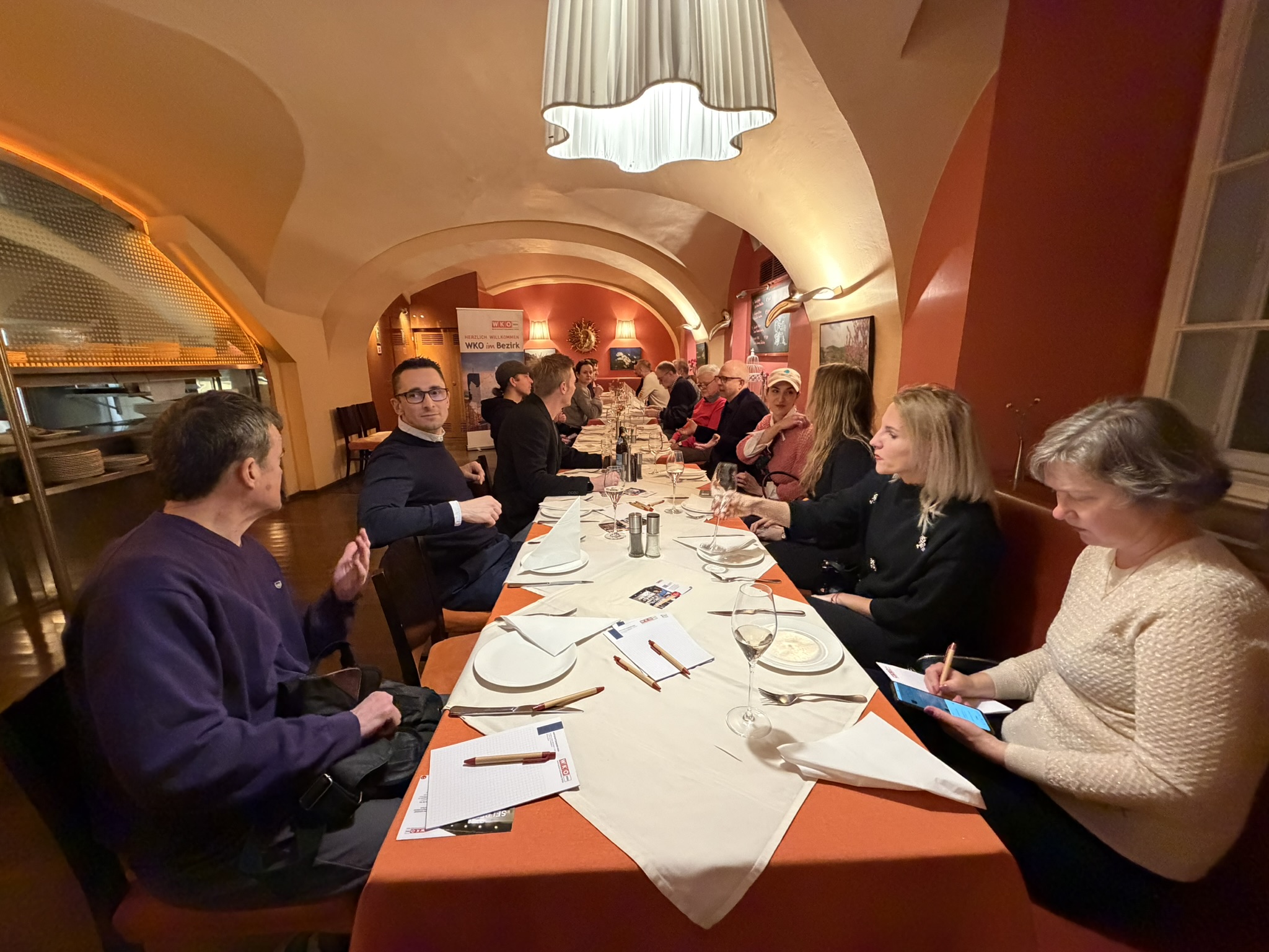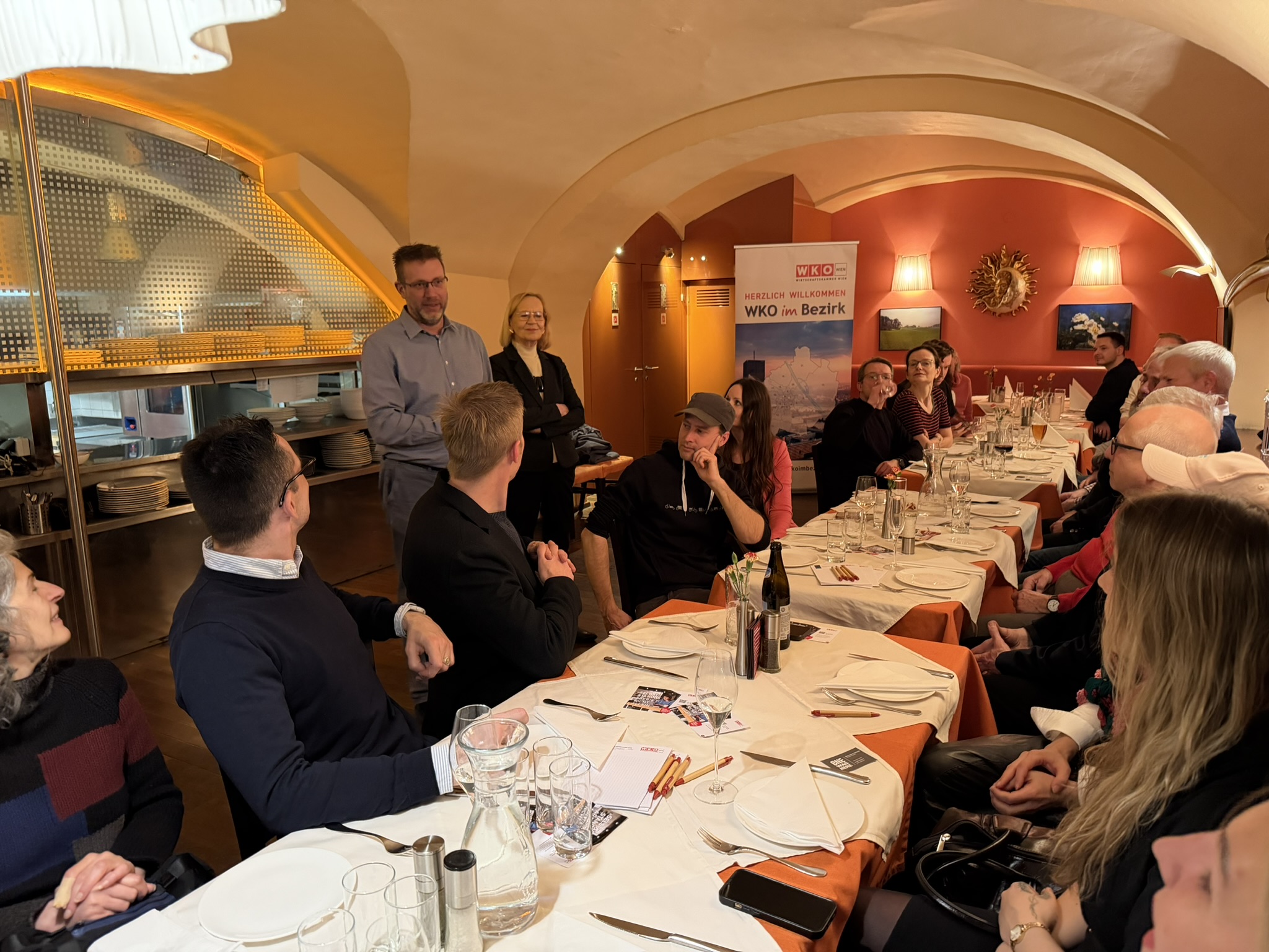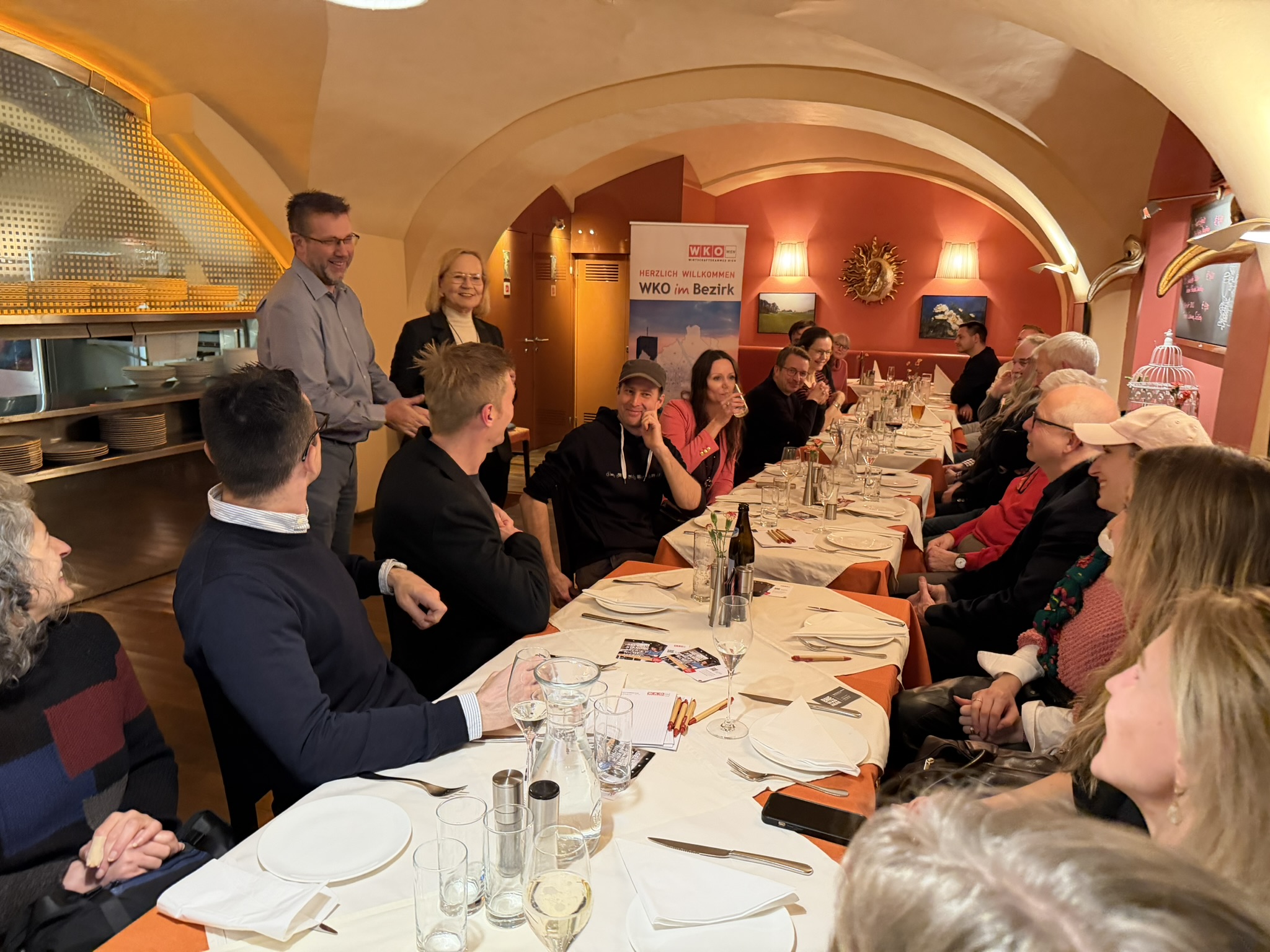 Die Trattoria Margareta am Margaretenplatz bildete diesmal den stimmungsvollen Rahmen für das alljährliche WKOimBezirk-Neujahrstreffen. In gemütlicher Atmosphäre und bei italienischem Flair sowie italienischen Spezialitäten kamen zahlreiche Unternehmer:innen aus dem Bezirk zusammen, um sich kennenzulernen, auszutauschen und neue Kontakte zu knüpfen. Besonders erfreulich war, dass viele neue Betriebe bzw. auch viele erstmals teilgenommen haben. Dies sorgte für frische Impulse und einen lebendigen, offenen Austausch.