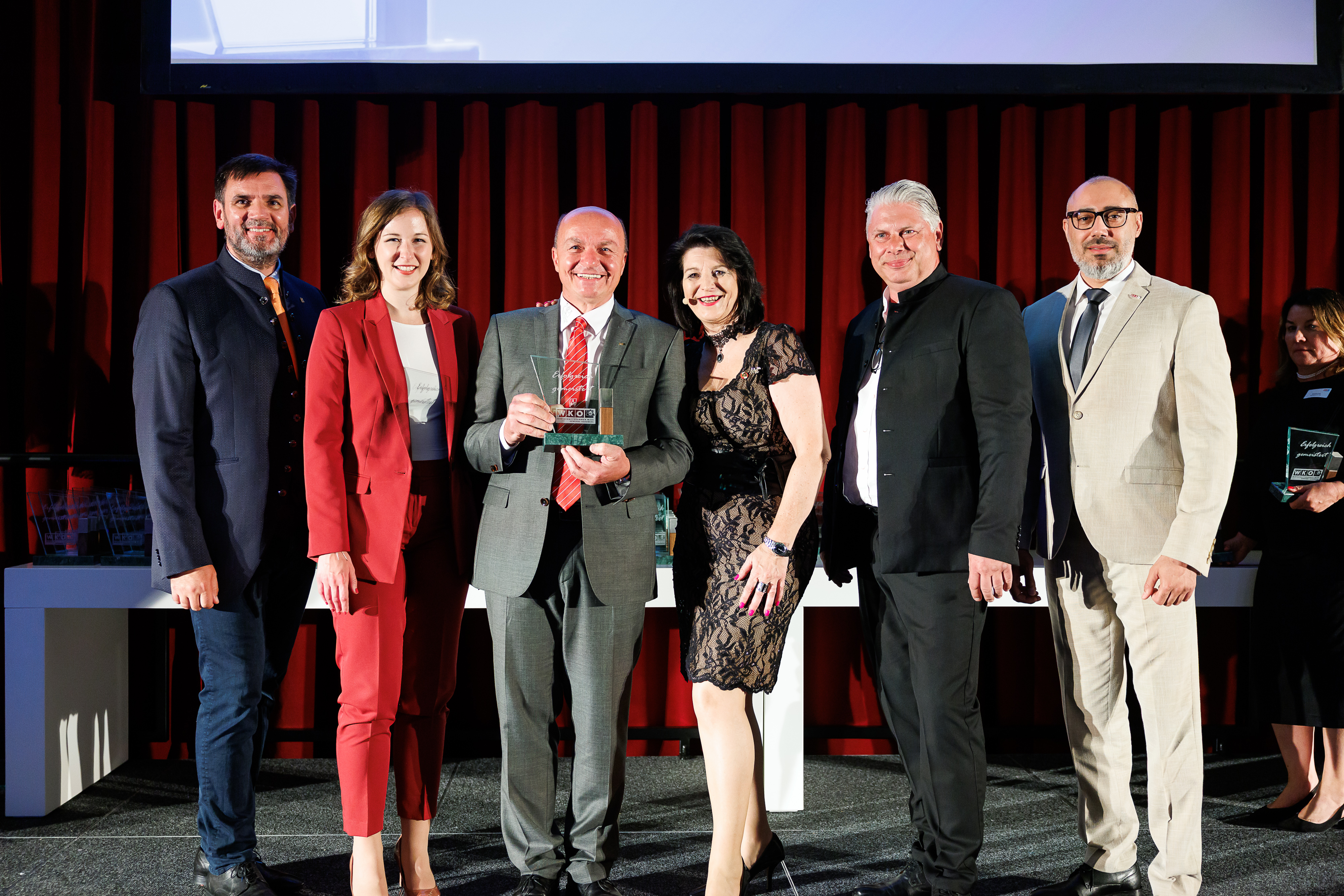 Für BHG haben 14 Bodenleger, 5 Stuckateure und Trockenausbauer und 3 Wärme-,Kälte-,Schall- u. Branddämmer die Trophäe überreicht erhalten.