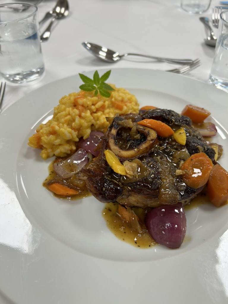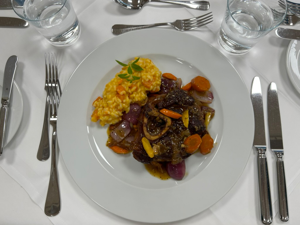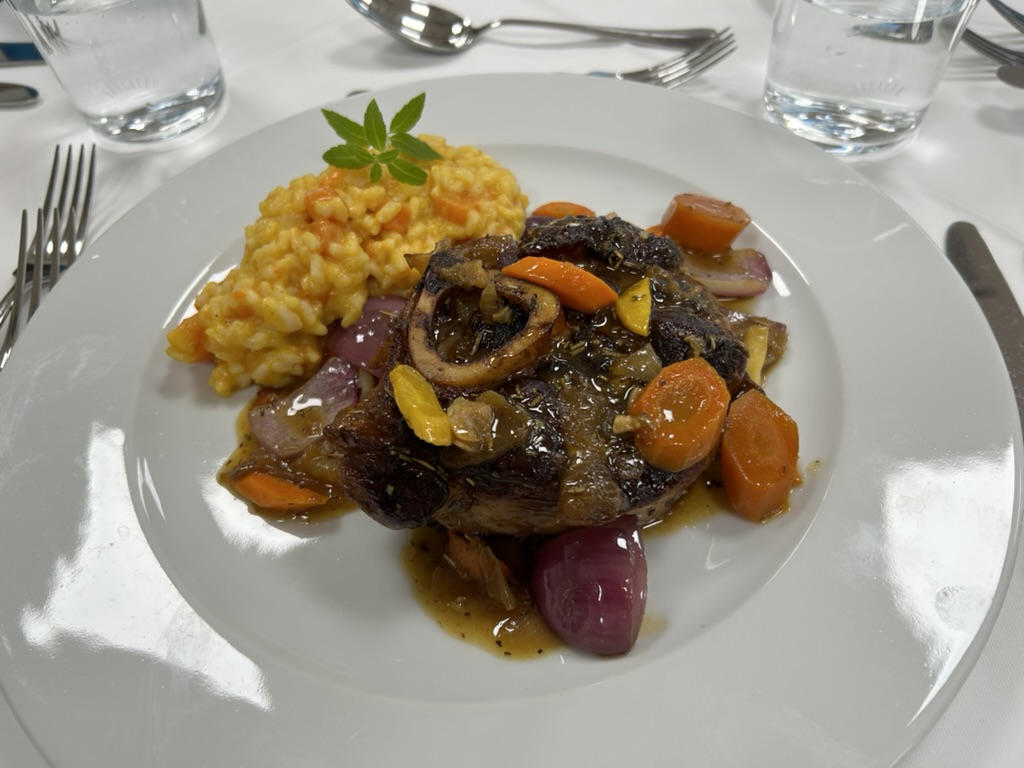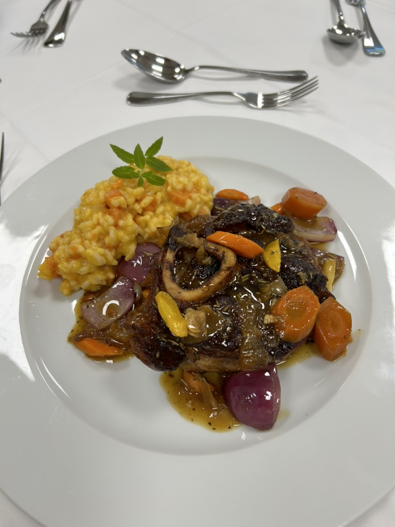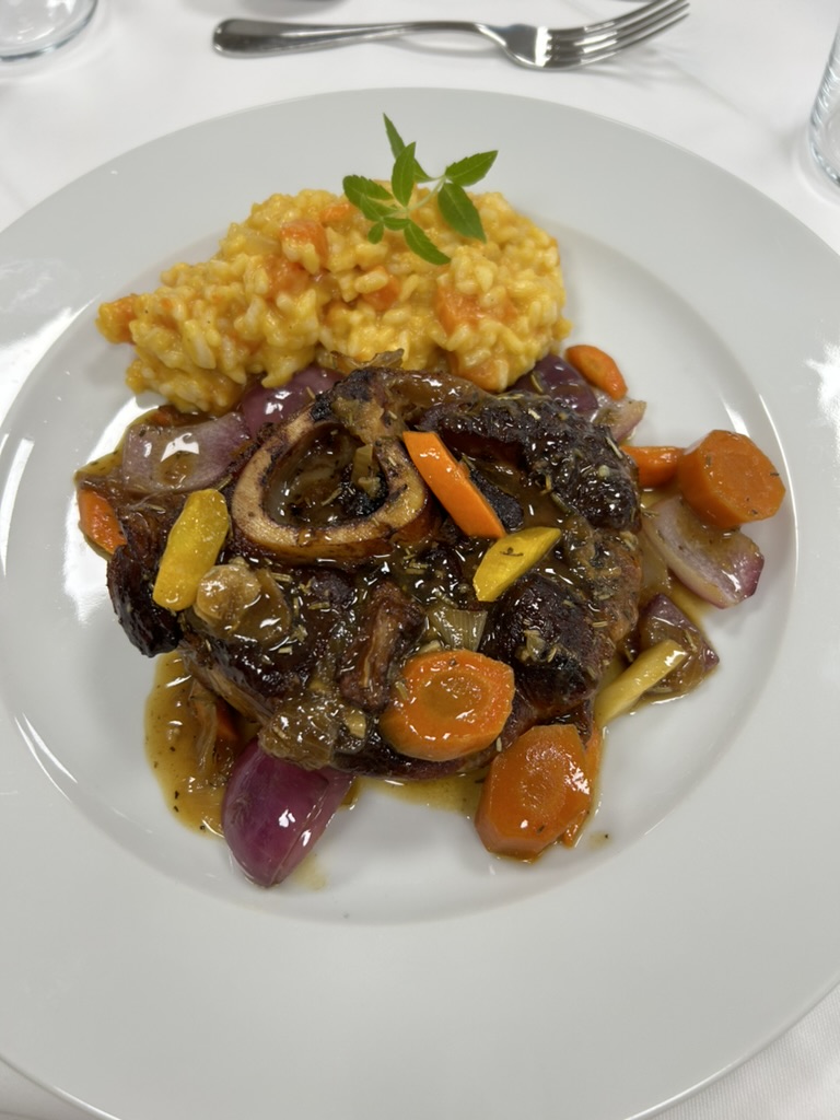 Hauptspeise: Geschmorte Kalbshaxe (Ossobuco) mit Kürbisrisotto (Zutaten für 4 Personen)