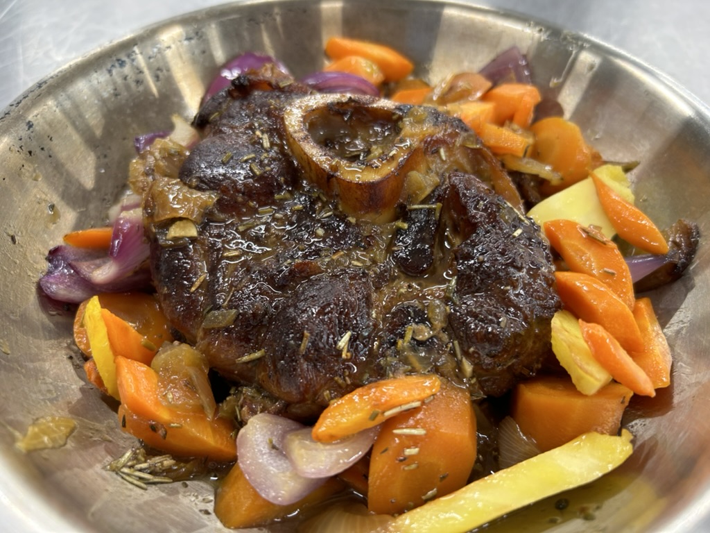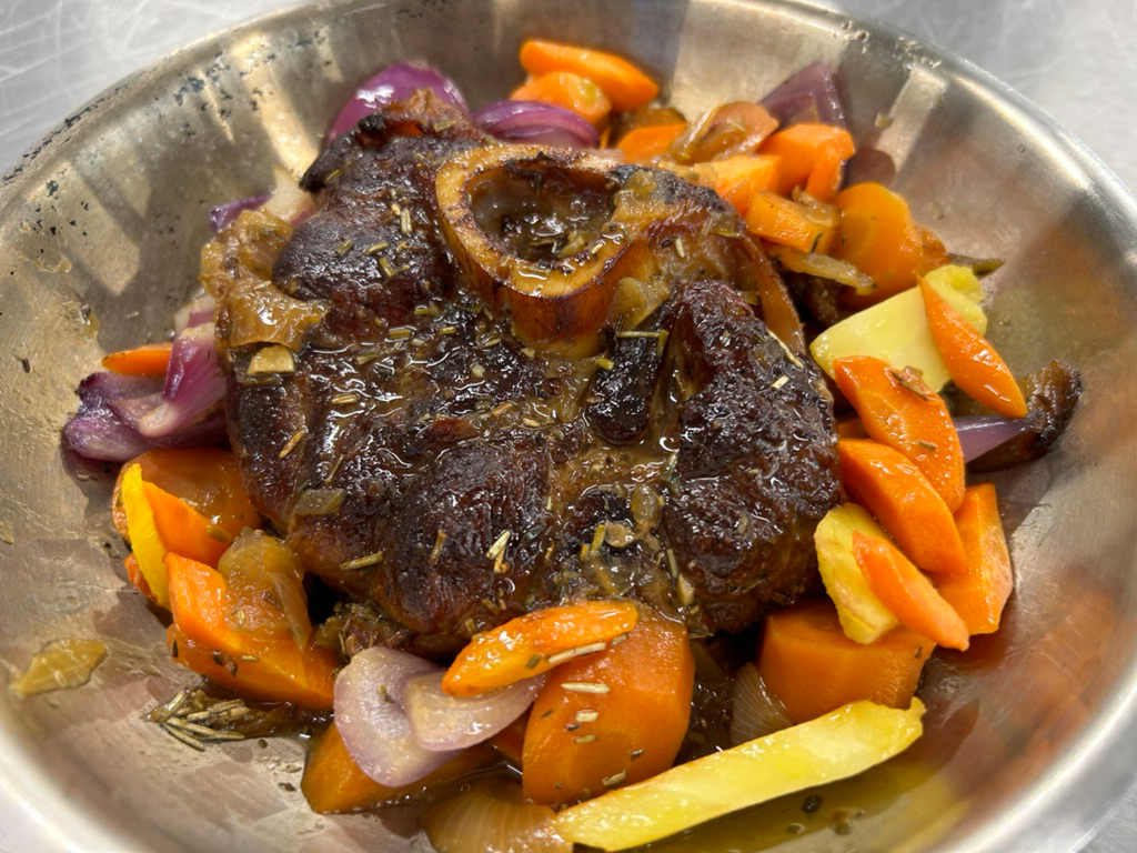 - 4 Stück Kalbshaxe in Scheiben geschnitten (ca. 1 kg)