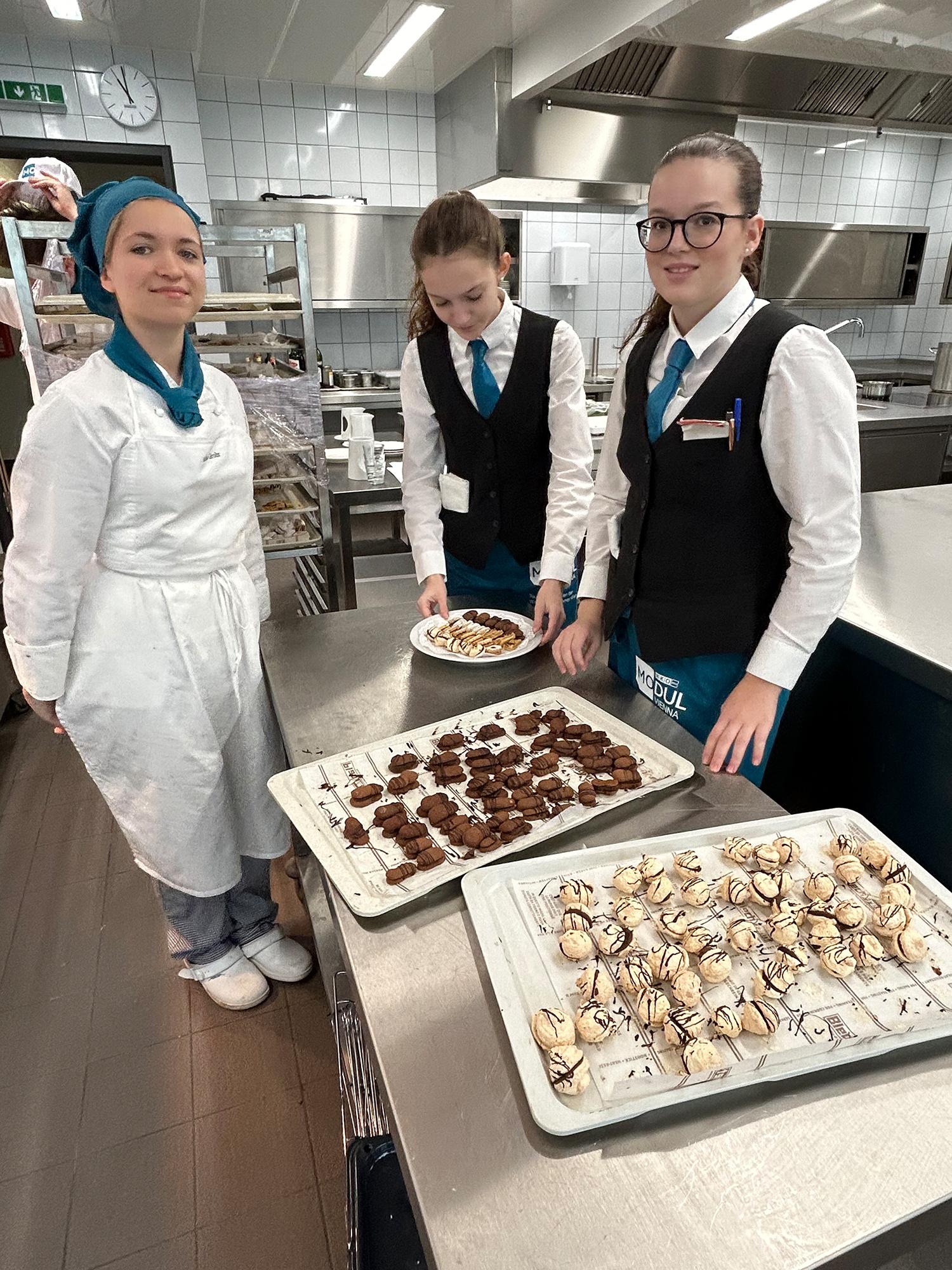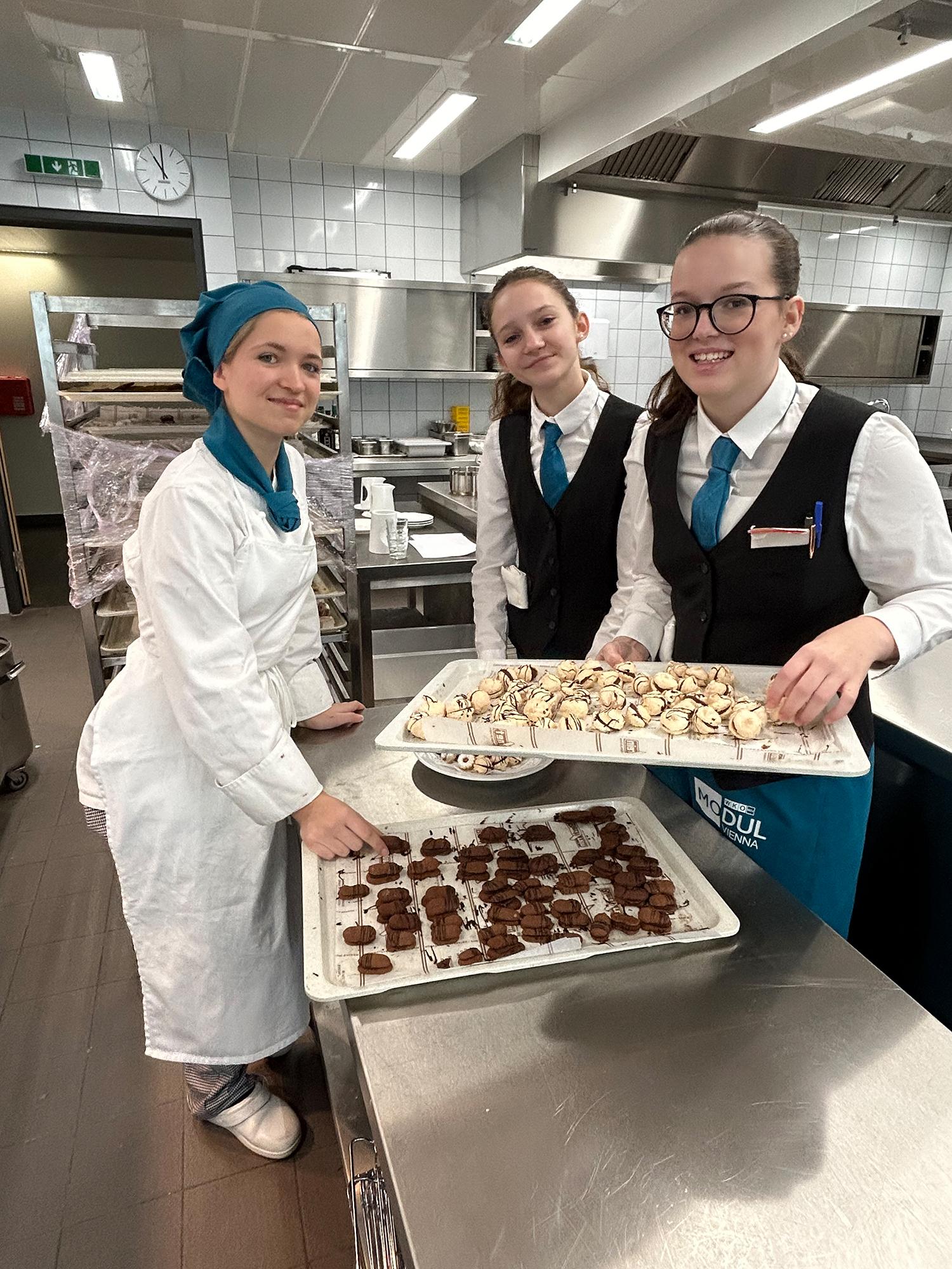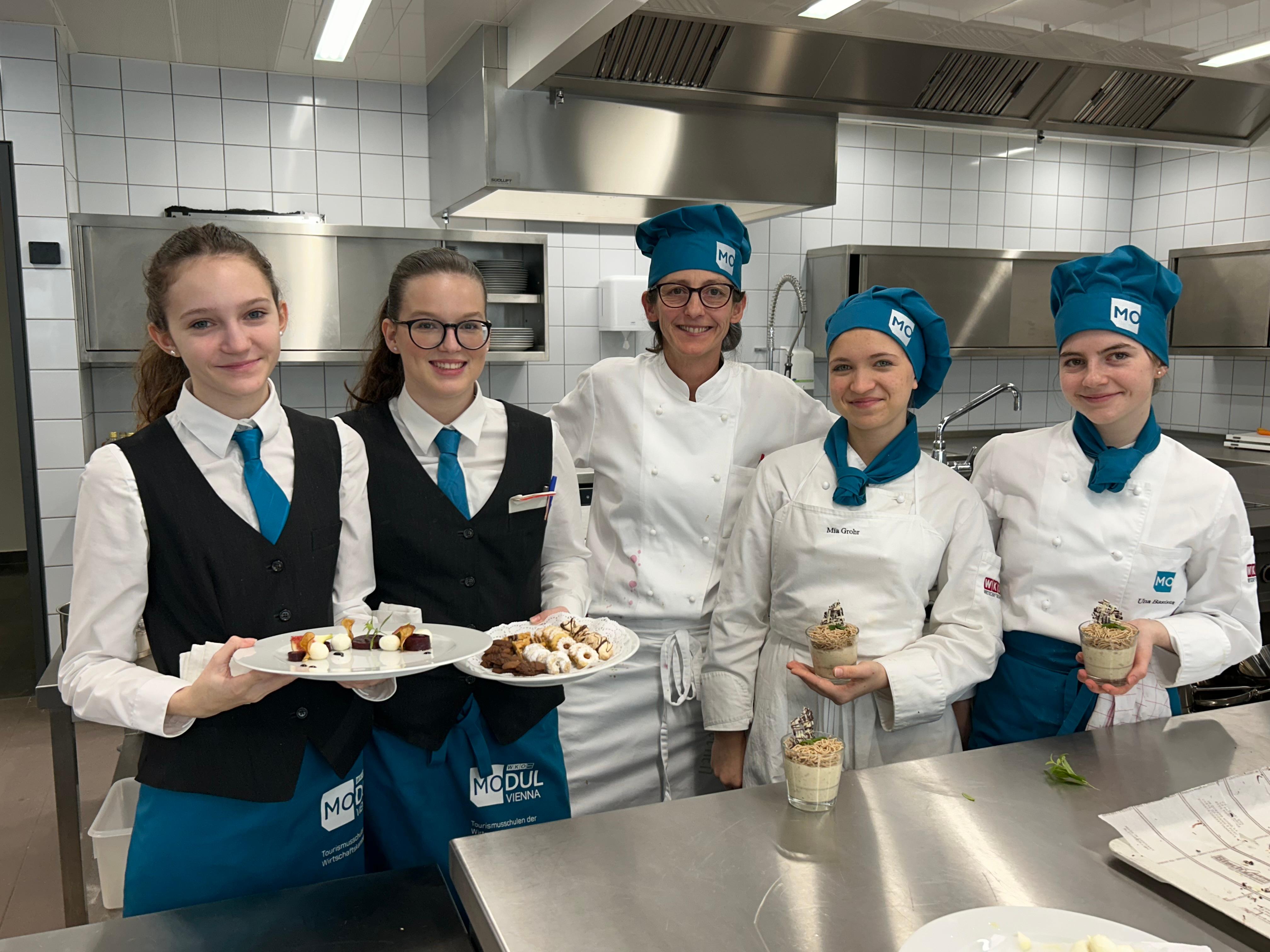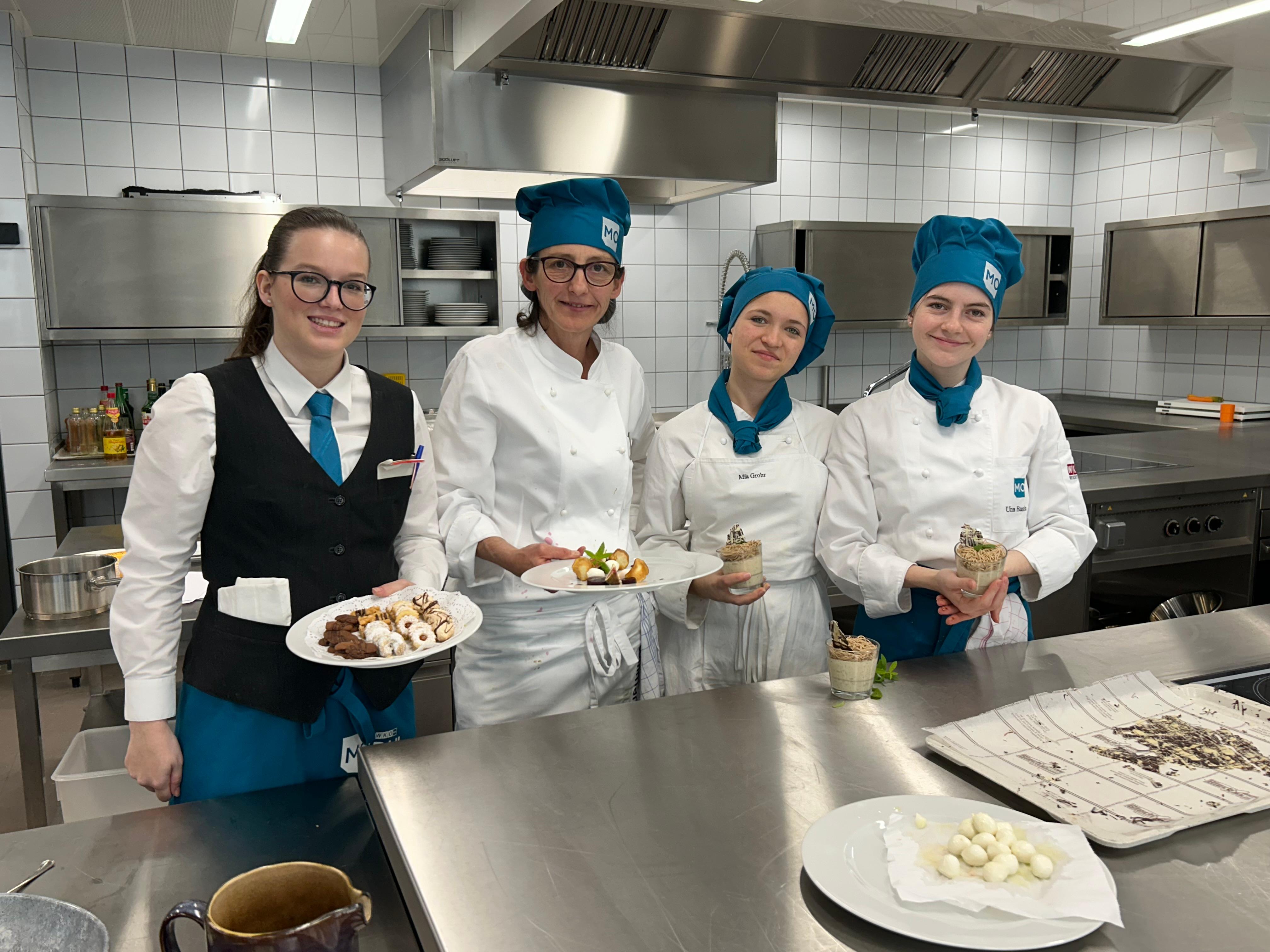 Foto: Martina Willmann (Mitte), Haubenköchin und Praxislehrerin am MODUL, gibt Tipps für ein gelungenes Weihnachtsmenü.