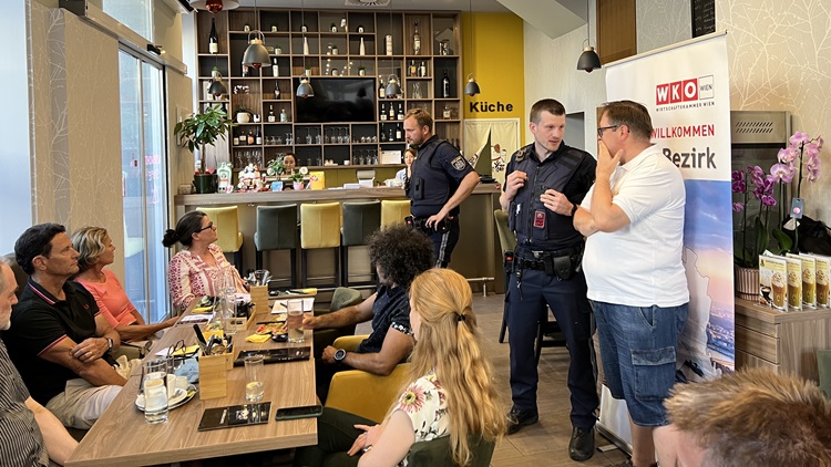 Unter dem Motto „Gemeinsam.Sicher“ fand ein bedeutendes Businesstreffen im Restaurant Ori Fusion Kitchen in der Reinprechtsdorfer Straße 3 statt. Die Veranstaltung bot lokalen Unternehmer:innen eine Plattform zum Austausch mit der Margaretener Polizei von der Polizeiinspektion Viktor Christ Gasse und lud zur Diskussion und zum Austausch über aktuelle Sicherheitsfragen im Bezirk.