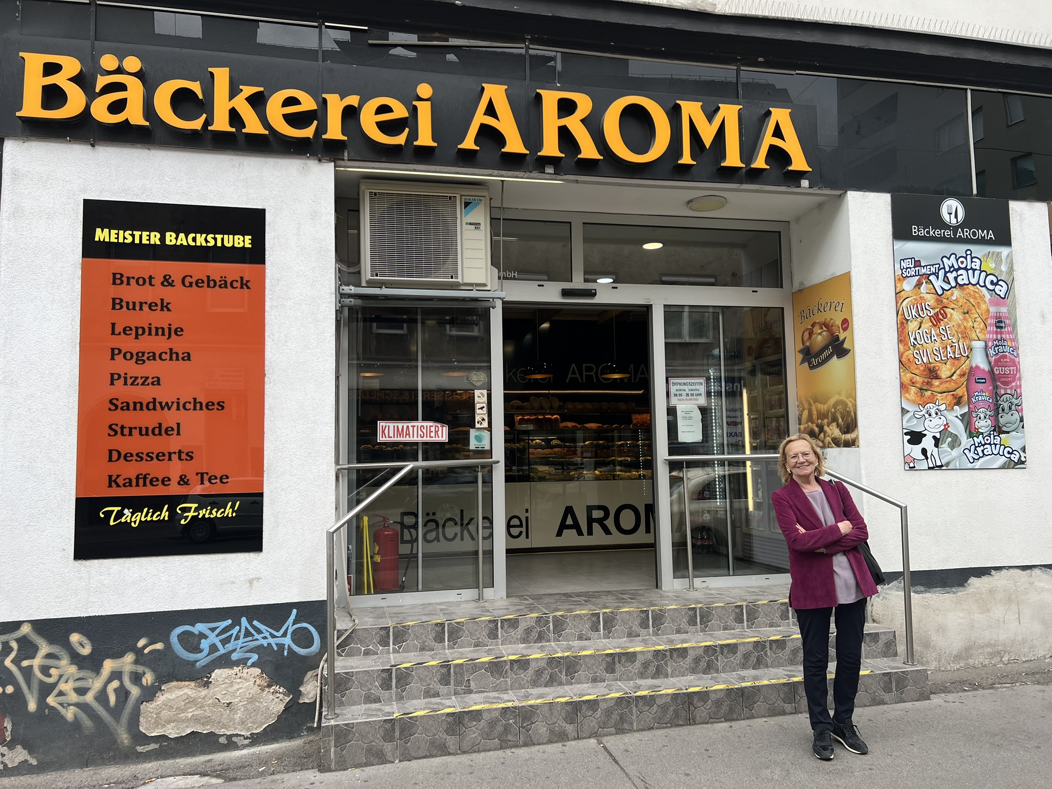 Ein echtes Stück gelebte Nachbarschaftskultur ist die Bäckerei Aroma, die bereits seit acht Jahren fixer Bestandteil der Reinprechtsdorfer Straße ist. Mit täglich frisch gebackenem Brot, einer feinen Auswahl an Gebäck und Mehlspeisen überzeugt sie Stammkundschaft wie auch Laufkundschaft gleichermaßen. Die Inhaberin legt besonderen Wert auf Handarbeit und regionale Zutaten – ein Ort, an dem Qualität und persönliche Betreuung großgeschrieben werden.